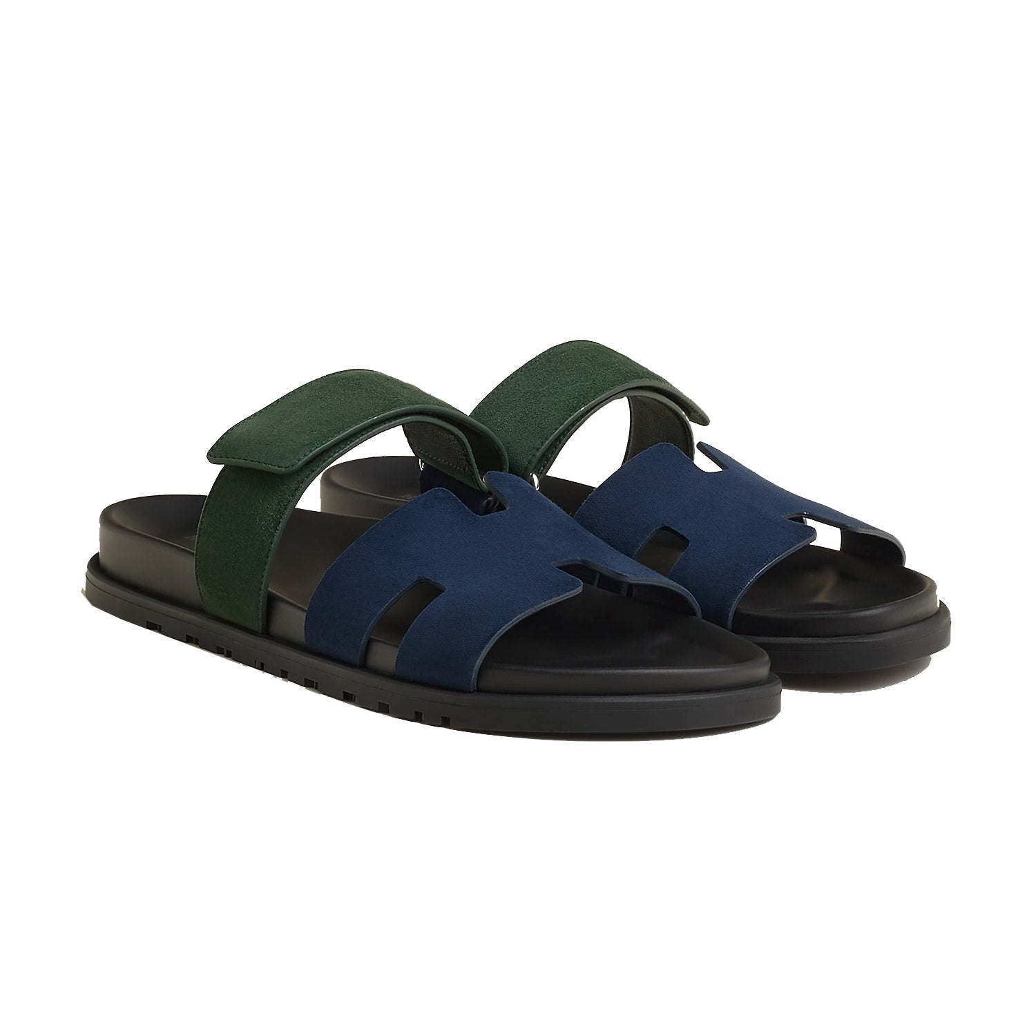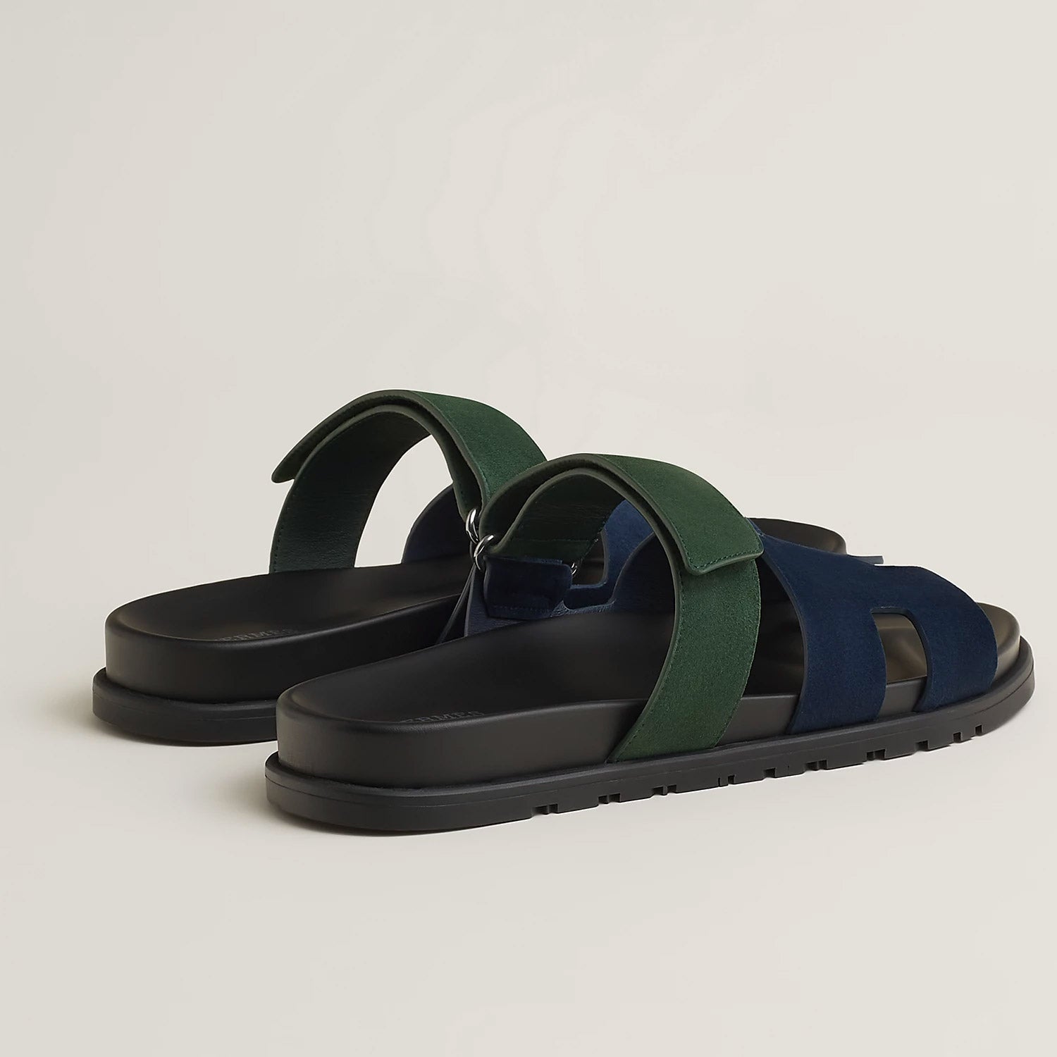 Techno-sandal in suede goatskin with anatomical rubber sole and adjustable strap.