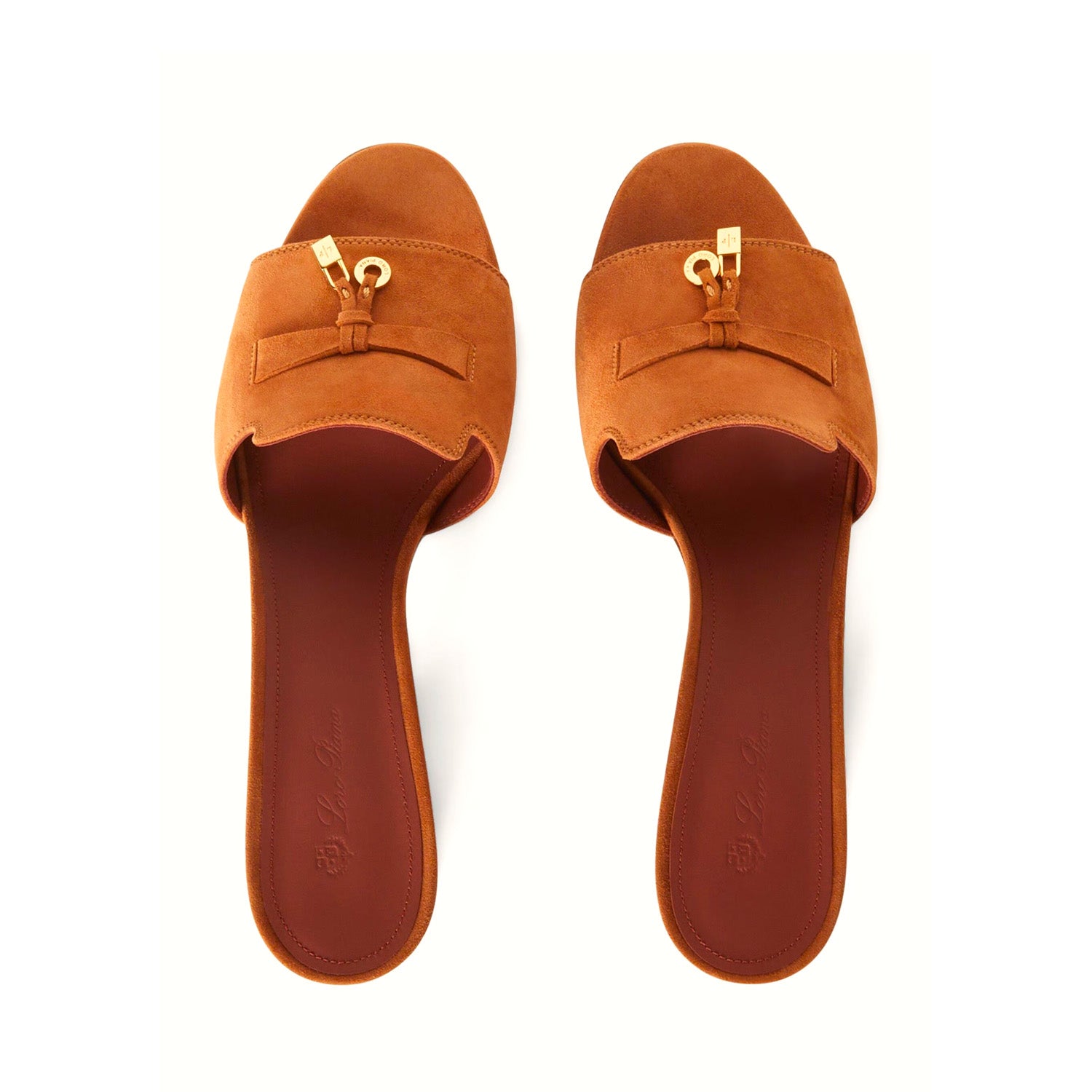Suede sandal with a band featuring Loro Piana My Charms, framed in tonal stitching. Refined and elegant, perfect both for city dressing and resort holidays.