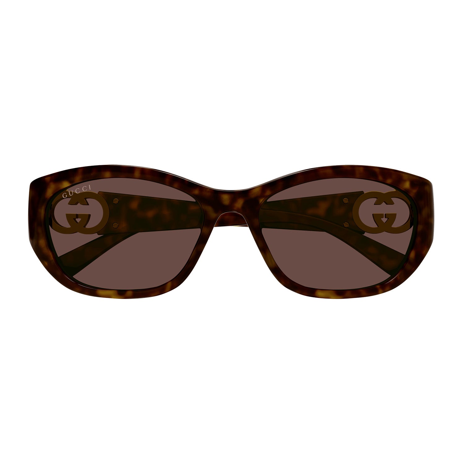 Carry over concept with a 90's feel characterized by the cut out GG interlocking logo on the hinge. Soft cat-eye shape. Soft cat-eye shape.