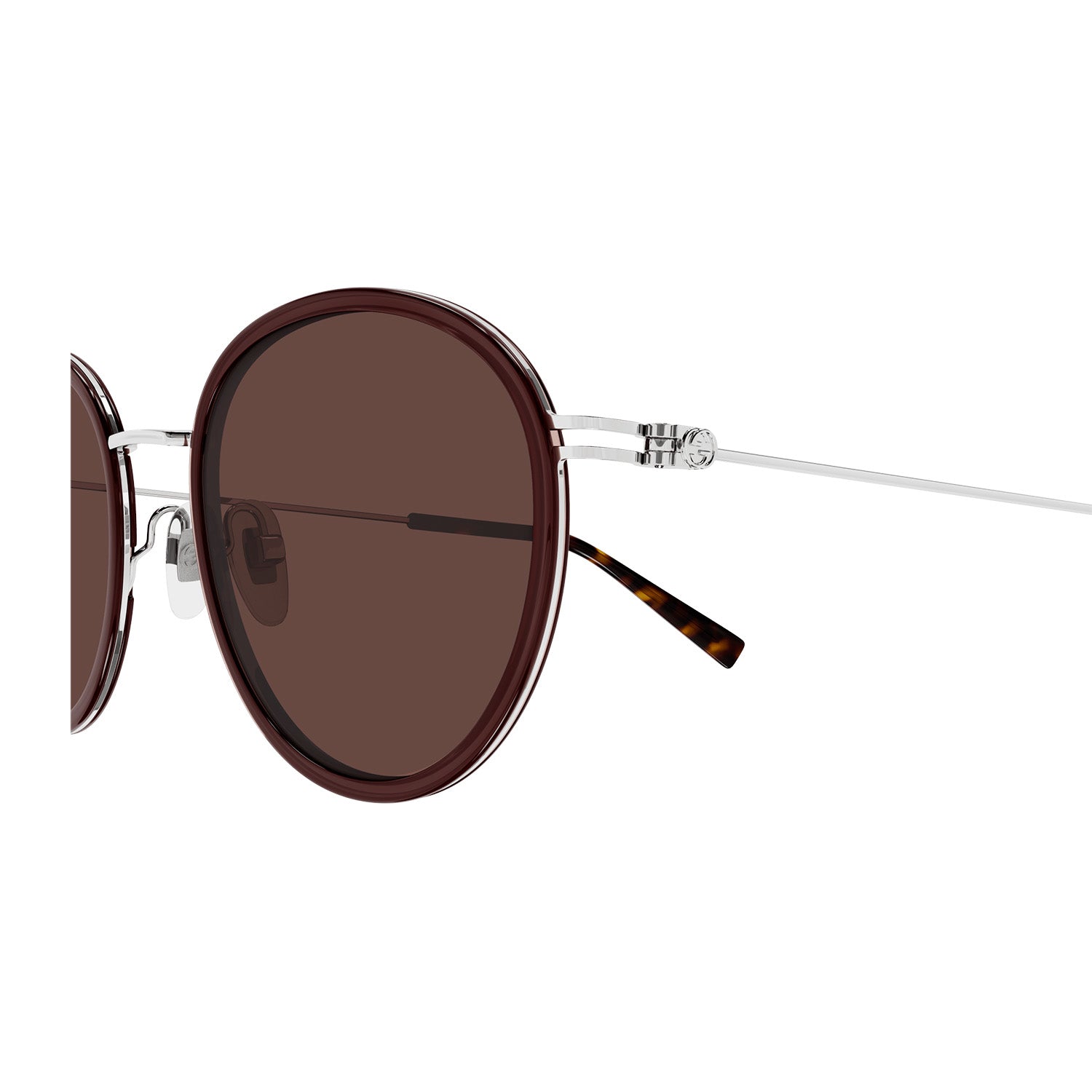 A new combi concept development featuring a light metal construction with a thin acetate front embellishment. Rounded panthos shape. Lettering logo on lenses. Commercial yet elegant femenine metal colors paired with solid cool lenses. Some SKUs featuring web detail on front rim.