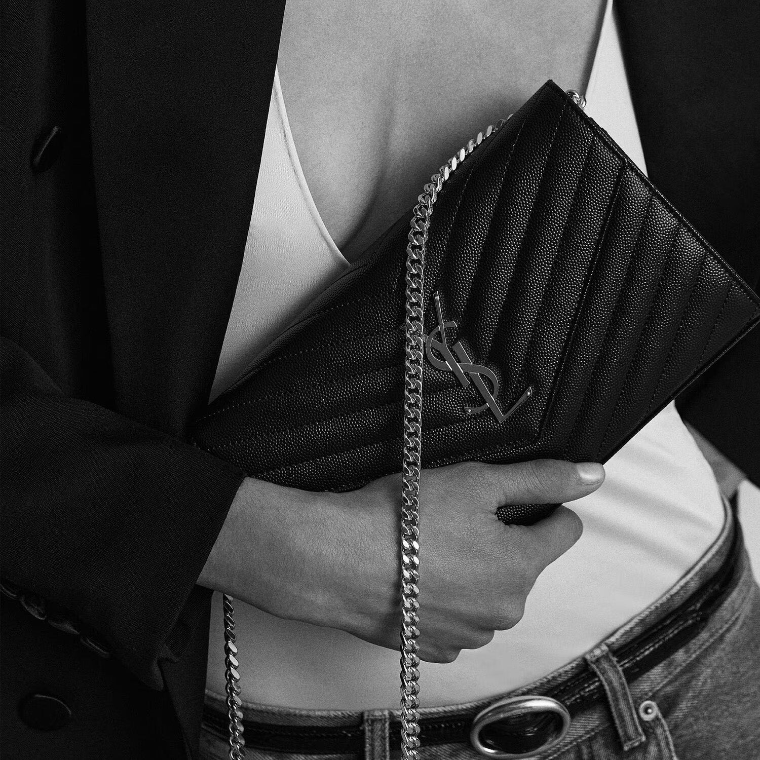 TIMELESS CHAIN PURSE WITH CASSANDRE EMBELLISHMENT AND ICONIC CHEVRON QUILTING.