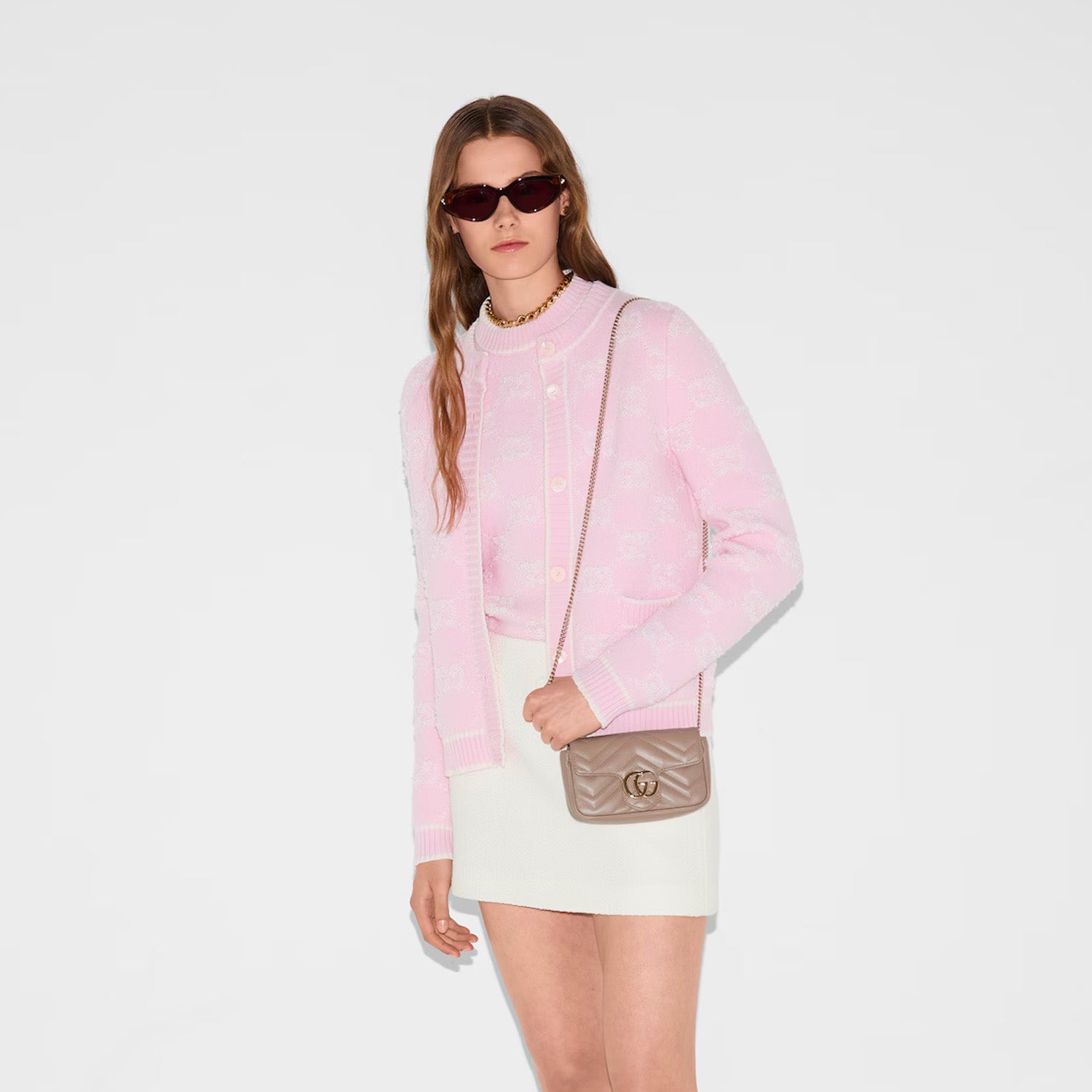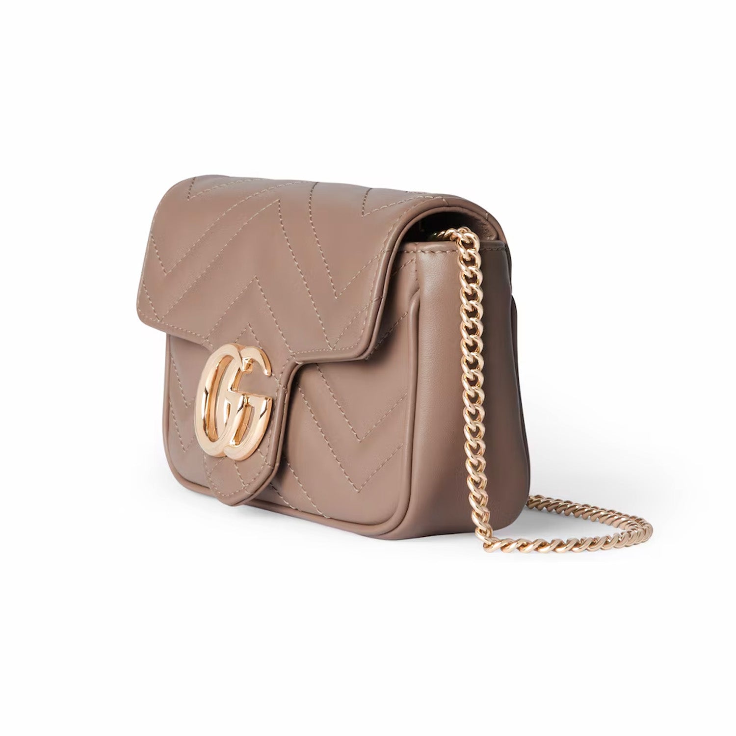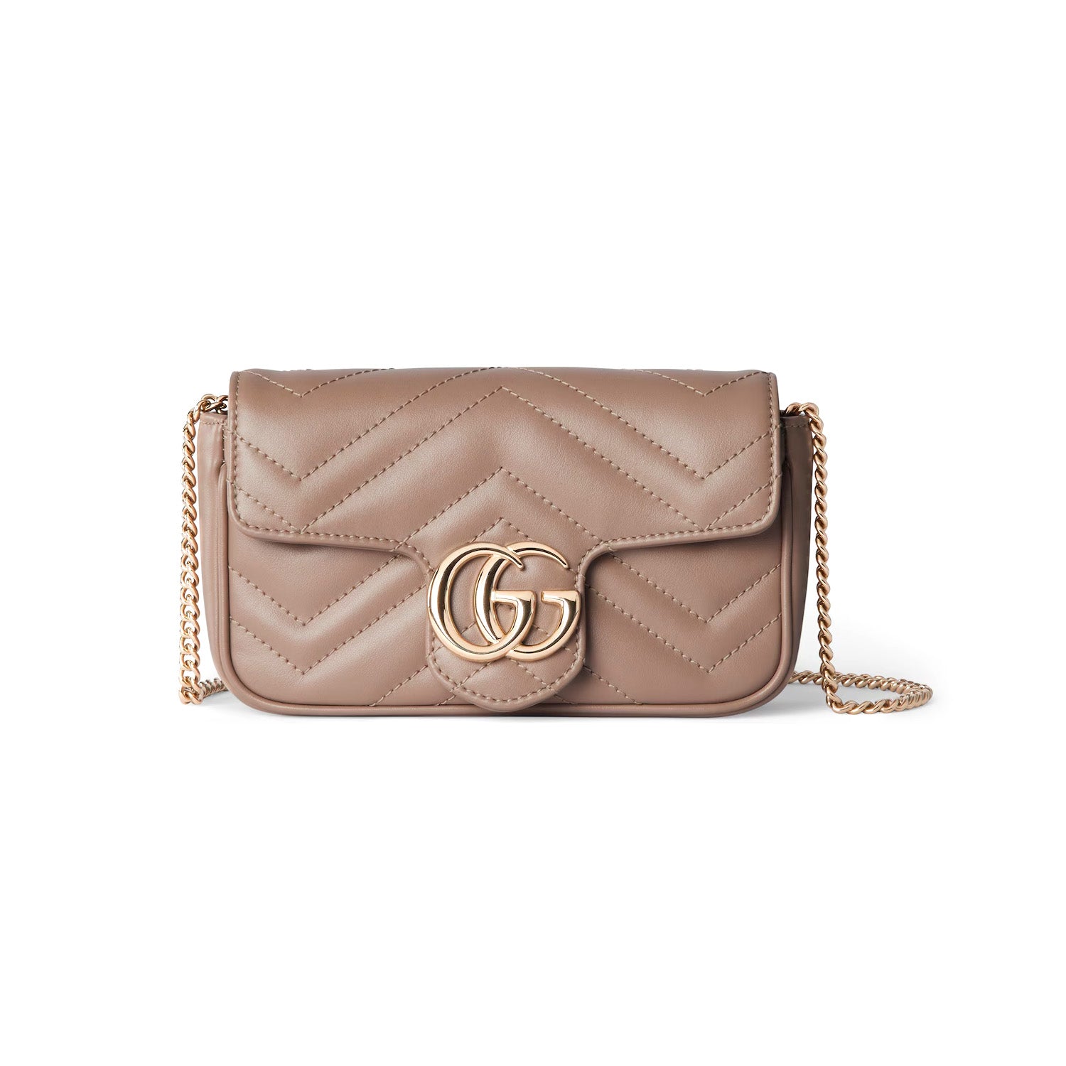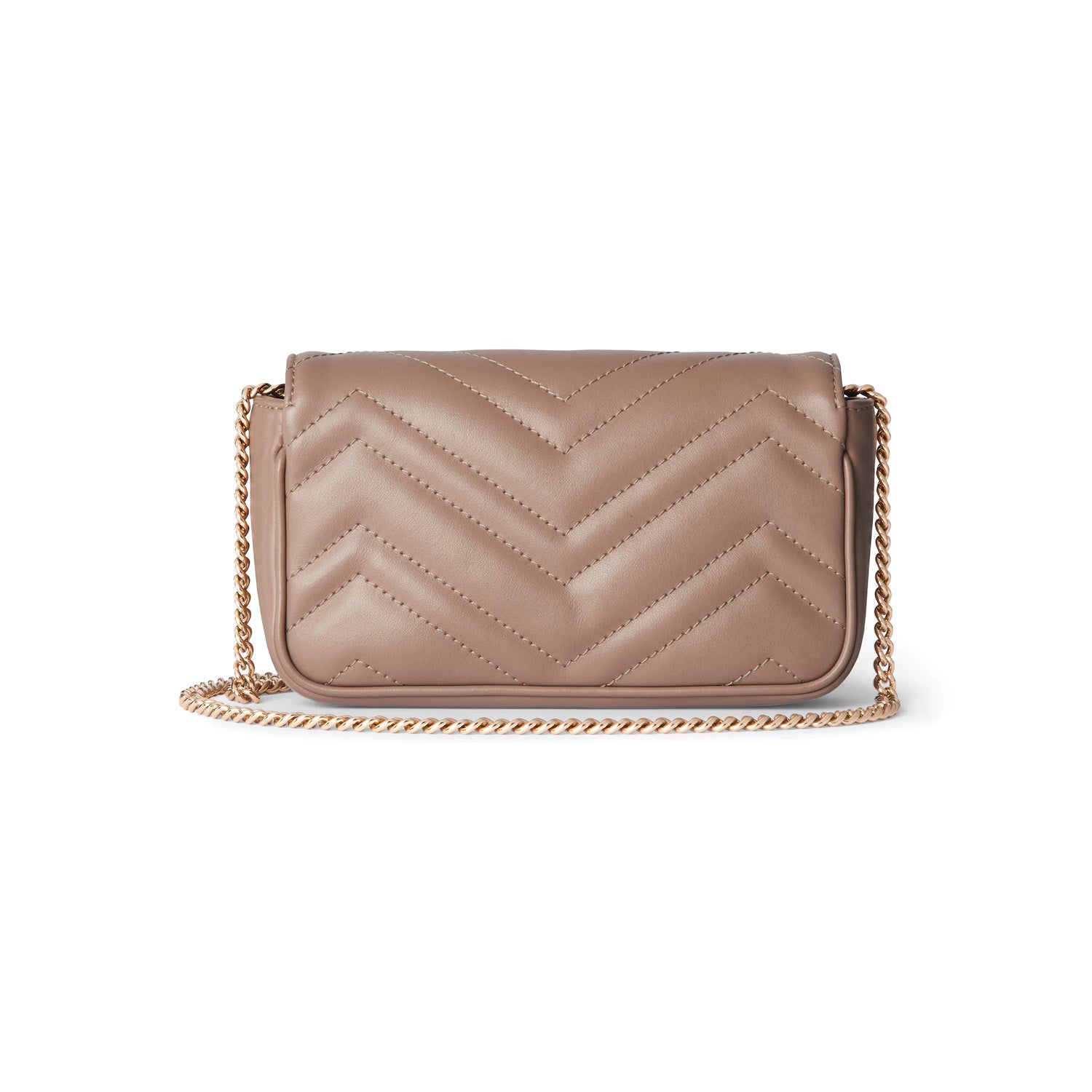 Embellished with the archival Double G logo, first introduced in the 1970s, the GG Marmont line has established itself as a signature style of the House. The two capital letters refer to the historic emblem, recognizable by the partially overlapping hardware on this bag front. Crafted from taupe matelassé leather, the elegant accessory is evocative of Florentine craftsmanship.