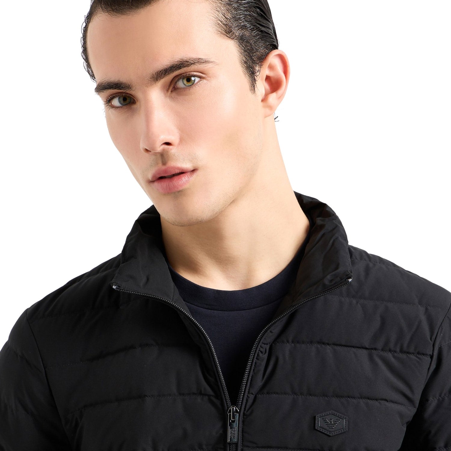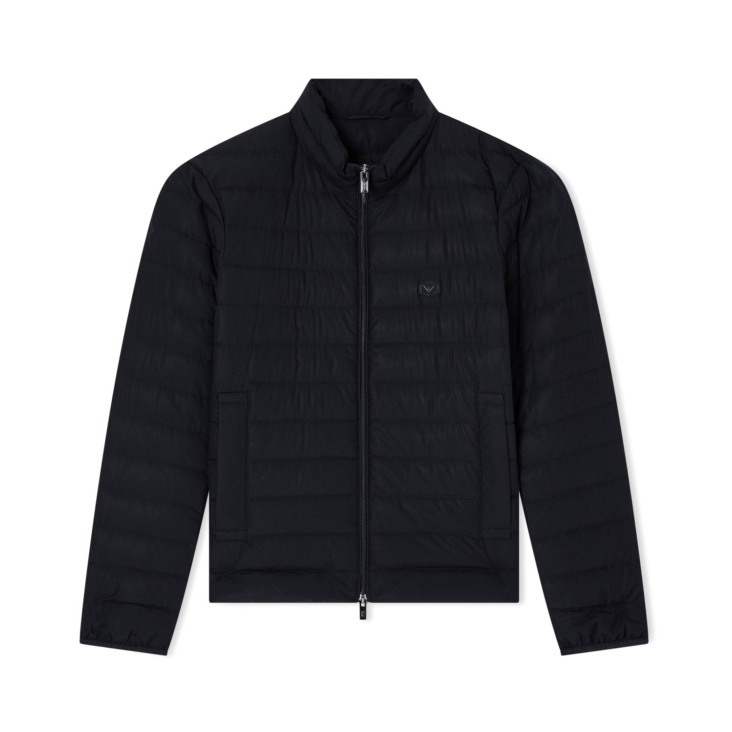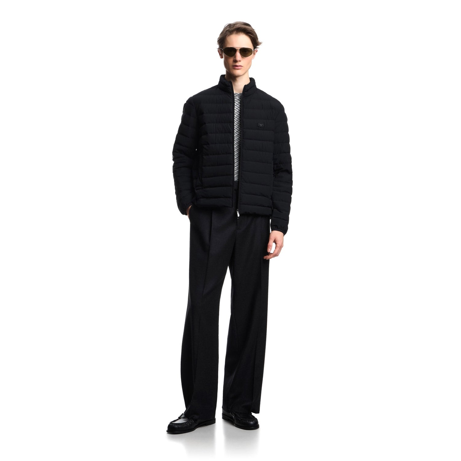 Nylon down jacket with full-zip fastening and eagle patch on the chest. The simple, modern nature of this men’s down jacket is enhanced by genuine feather padding and a matelassé effect. The perfect item for urban day wear. This item belongs to the Essentials clothing selection, the Emporio Armani capsule collection that is an evergreen statement of style: an ongoing collection with clean, well-designed shapes for a wardrobe that meets the demands of any season. These “essential”, versatile pieces are a must-have for the male wardrobe.