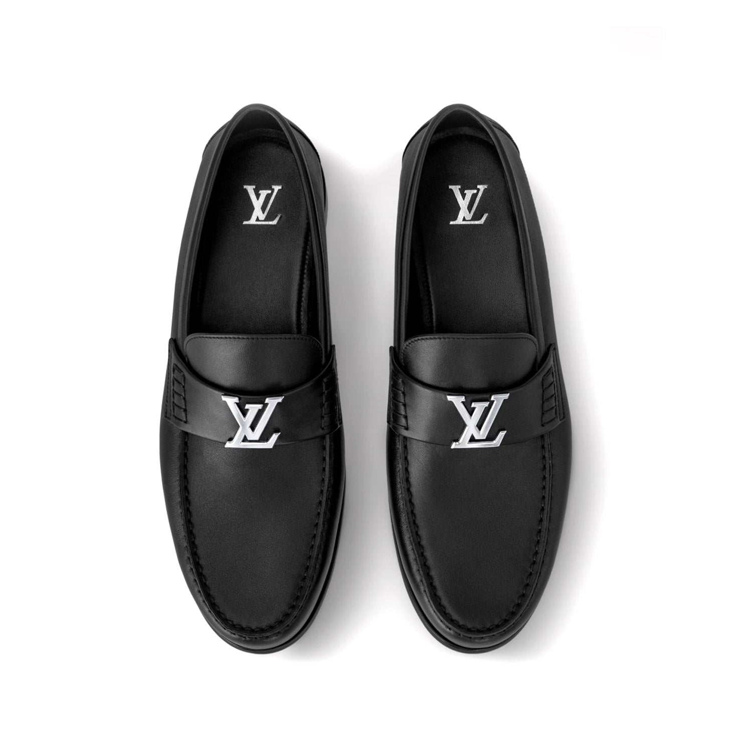 An icon of the Louis Vuitton shoe collection, the Major loafer is made of smooth calf leather. This timeless and versatile style is distinguished by its hand-crafted vamp, a testament to the House's shoemaking know-how, which takes one hour to stitch. A refined LV Initials accessory and a durable leather and rubber outsole complete this model.