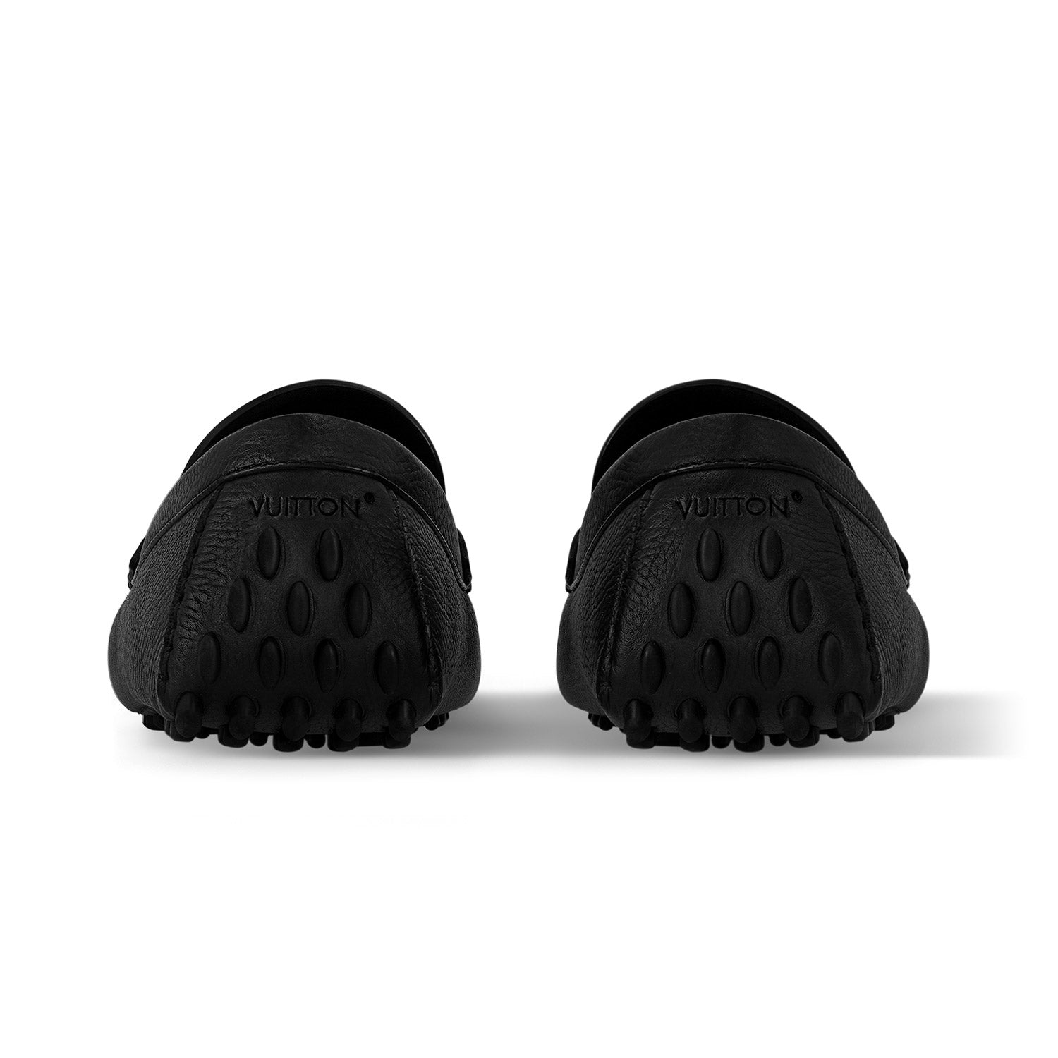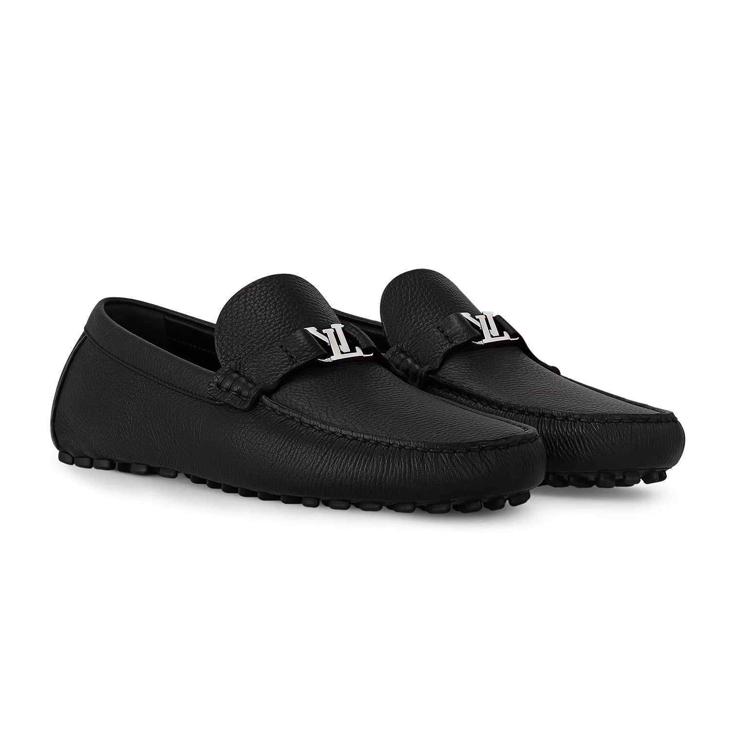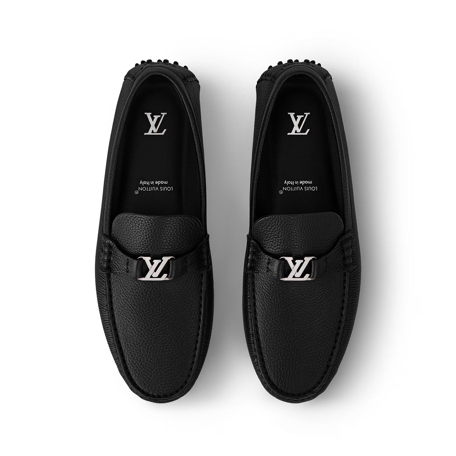 The LV SiLVerstone moccasin is crafted from grained calf leather for a refined look and a supple feel. This stylish car shoe has a lightweight tubular construction with a hand-stitched vamp signed with an LV Initials accessory. It comes on a flexible outsole with small rubber nubs arranged to replicate the House's signature Damier pattern.