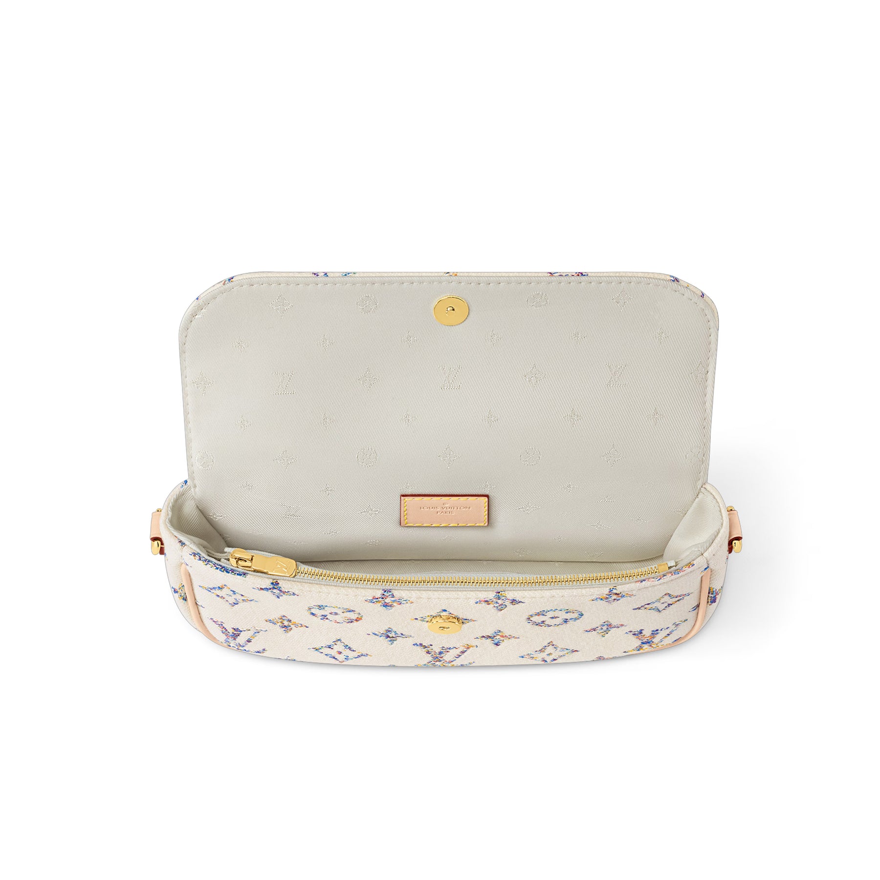 The Ivy wallet on chain is a fashionable mini bag with a rounded, rectangular shape and a magnetic flap closure. This version comes in tweed-like Monogram jacquard fabric and is complemented by natural leather trim. This model offers different style and carry options thanks to its removable, adjustable leather strap and removable, laced chain.