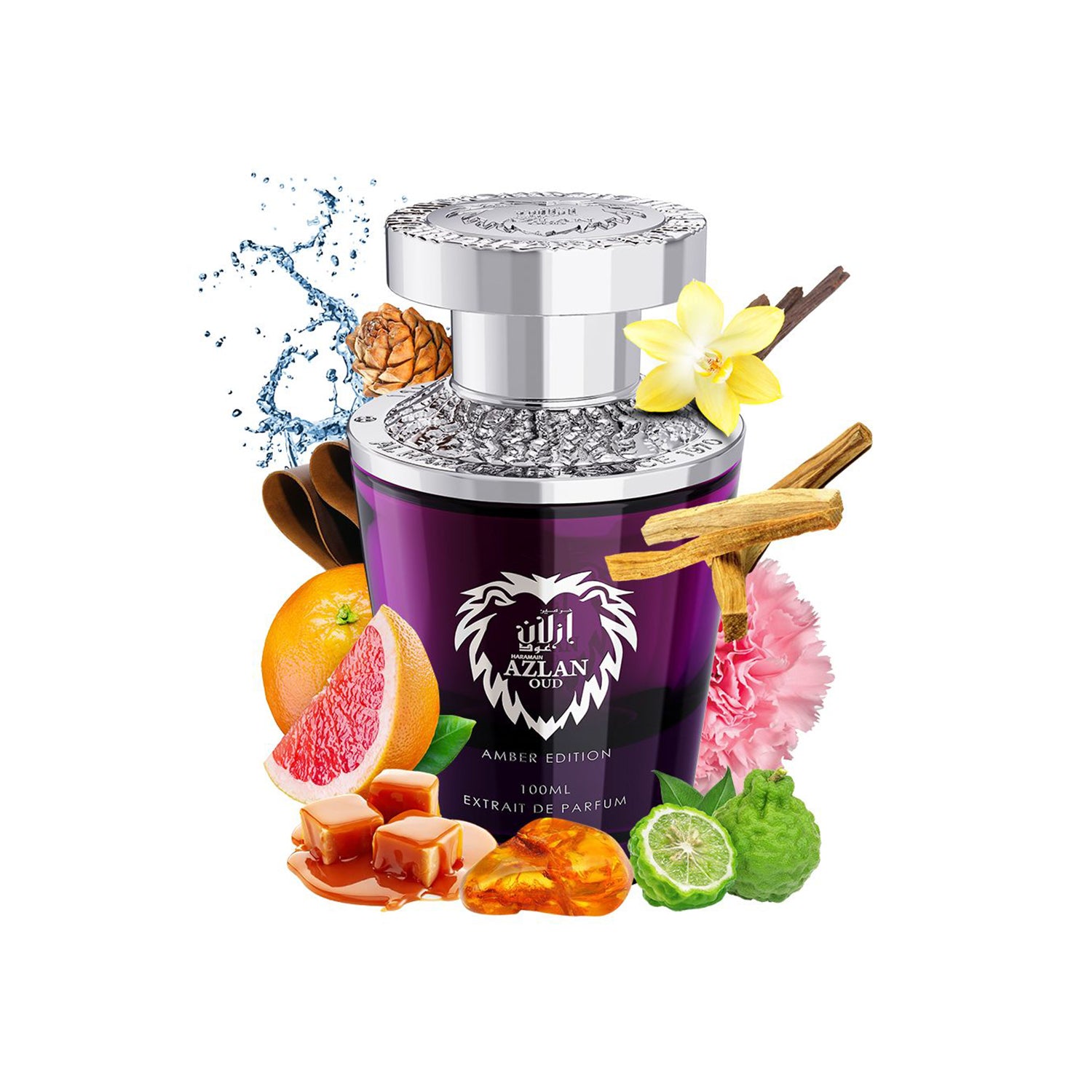 Haramain Azlan Oud Amber Edition is made for those who dare to be different, a luxurious scent crafted to take you on an unforgettable aromatic adventure. The fragrance opens with a blend of bergamot, grapefruit, and clary sage, infusing energy into your day. As it deepens, the heart of carnation, aqueous accord, fruity, and leather accord add depth and intrigue, balancing the freshness with a bold, sophisticated middle.