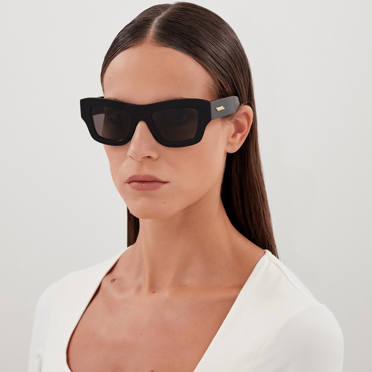Oversized Square Shape. Chunky acetate surfaces in front view. Slim profiles from the top view.