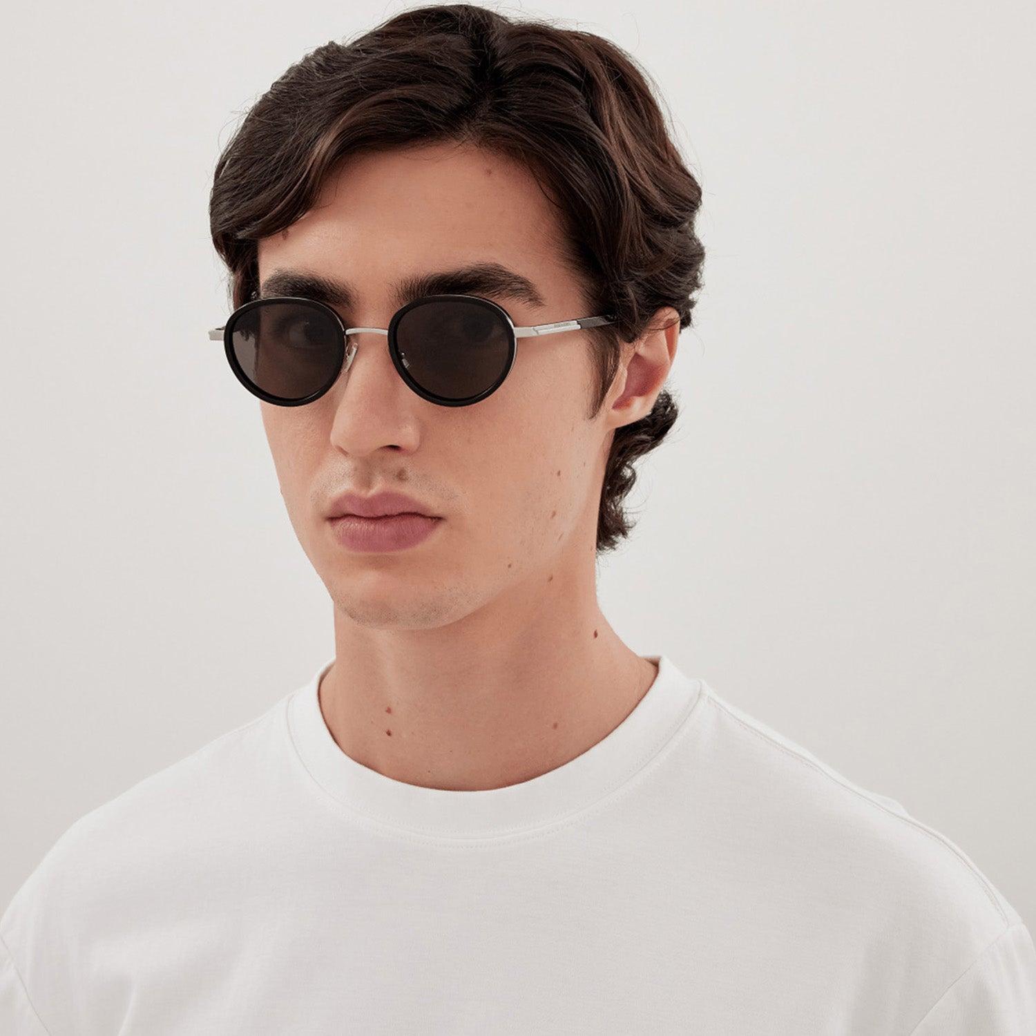 Oval panthos. Acetate endpieces layered over metal endpices for a precious combi construction.