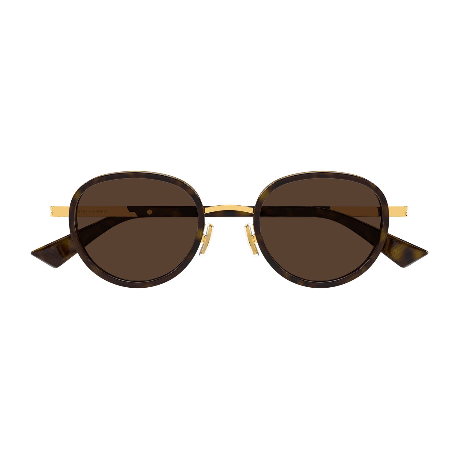 Oval panthos. Acetate endpieces layered over metal endpices for a precious combi construction.
