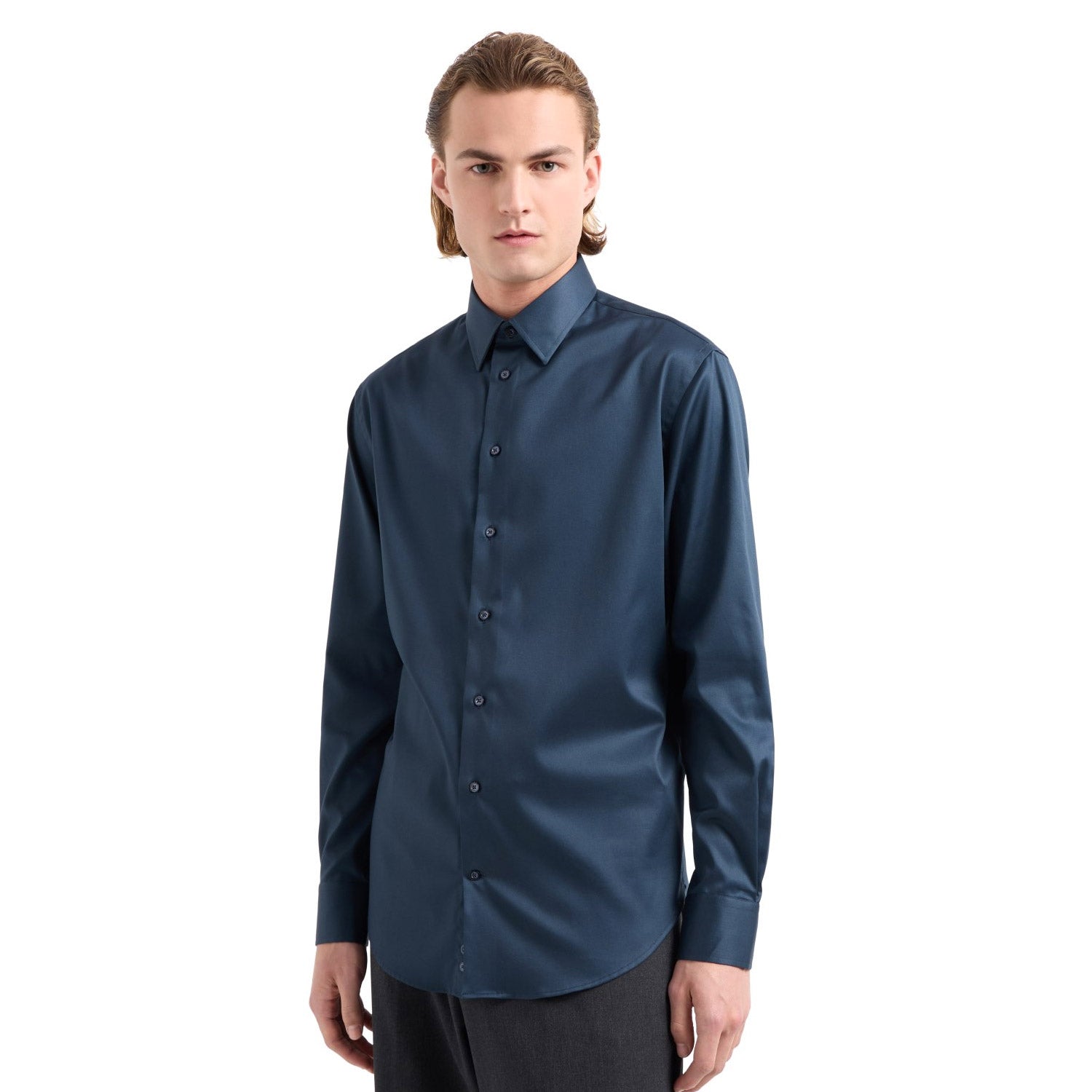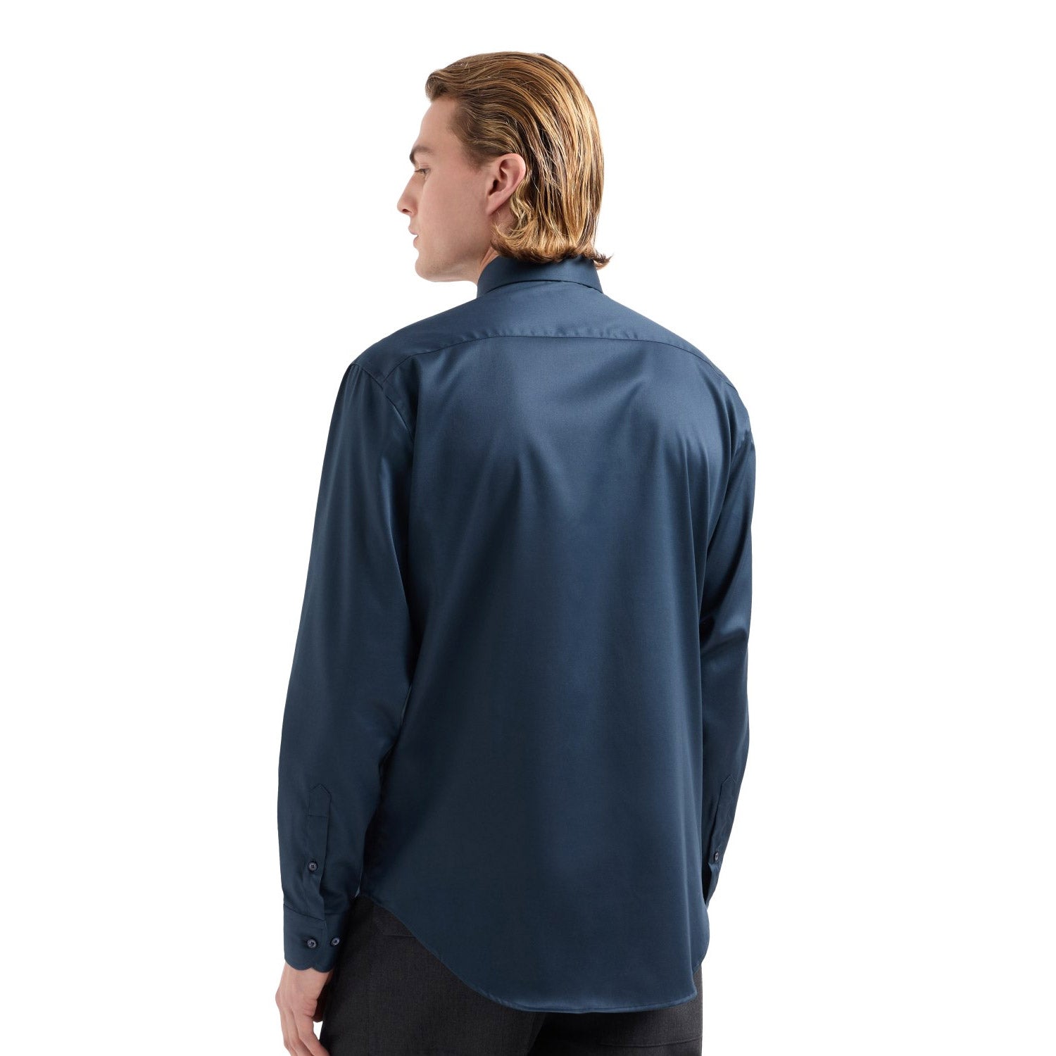 Shirt with classic collar and back yoke. The micro-armure weave is enhanced by the finish that gives the texture a particularly smooth appearance. A piece that is suitable for wearing on both formal and non-formal occasions.