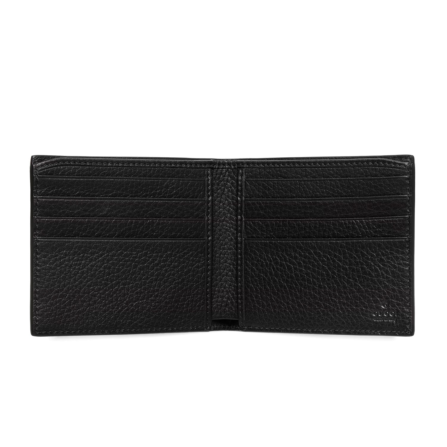 The all-black jumbo GG design returns for Pre-Fall 2023 on a selection of small leather pieces. A reinterpretation of Guccio Gucci's initials, the motif is an evergreen of the House that appears prominently in maxi size for an eye-catching logo feel. Here the emblematic leather defines this eight slot wallet.