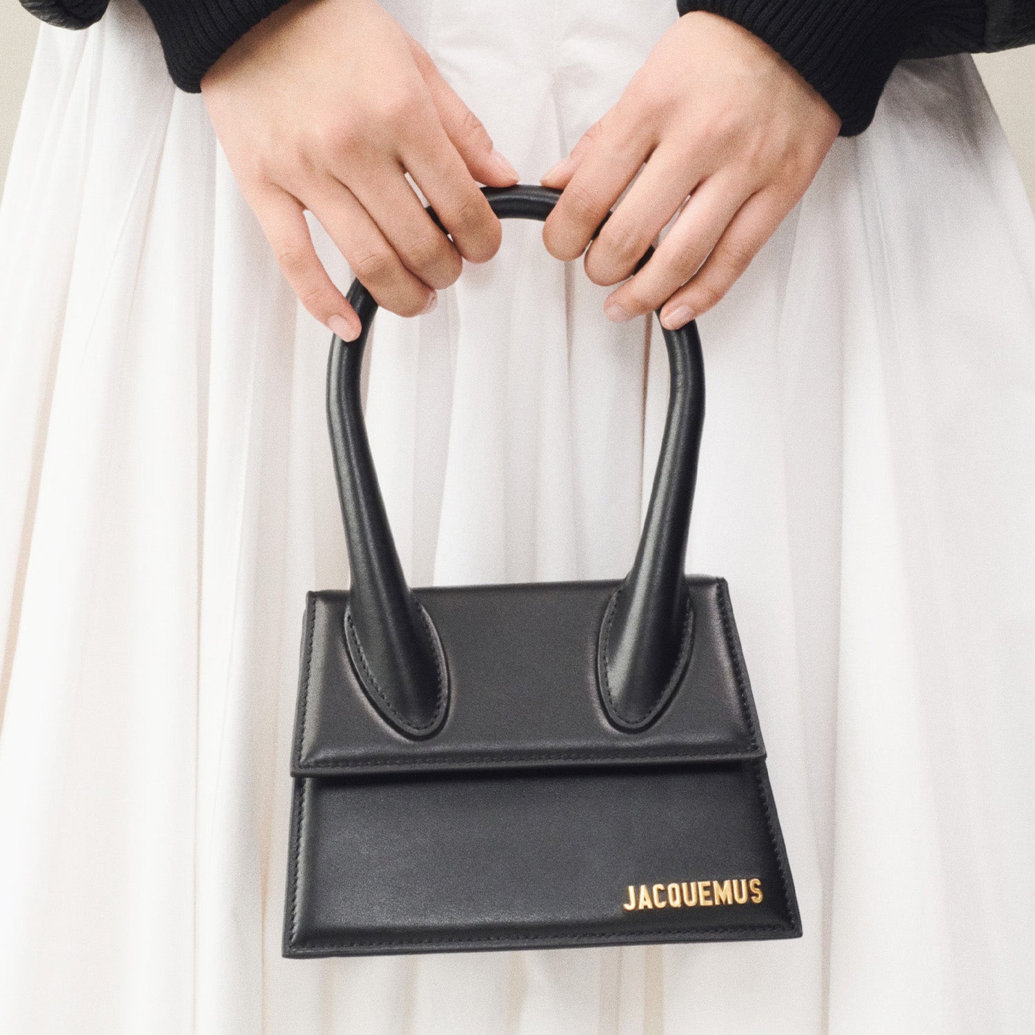 - Gold metal logo and hardware