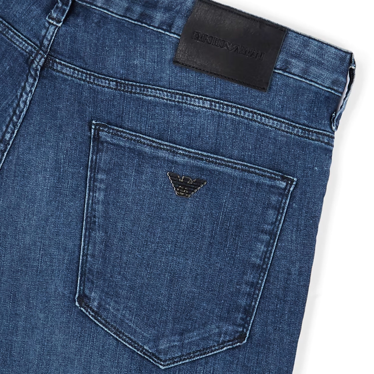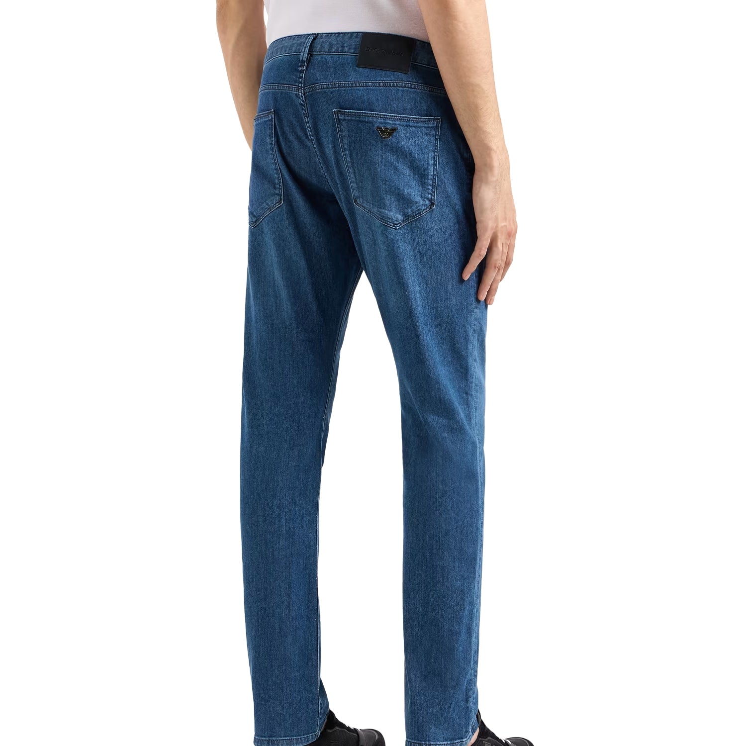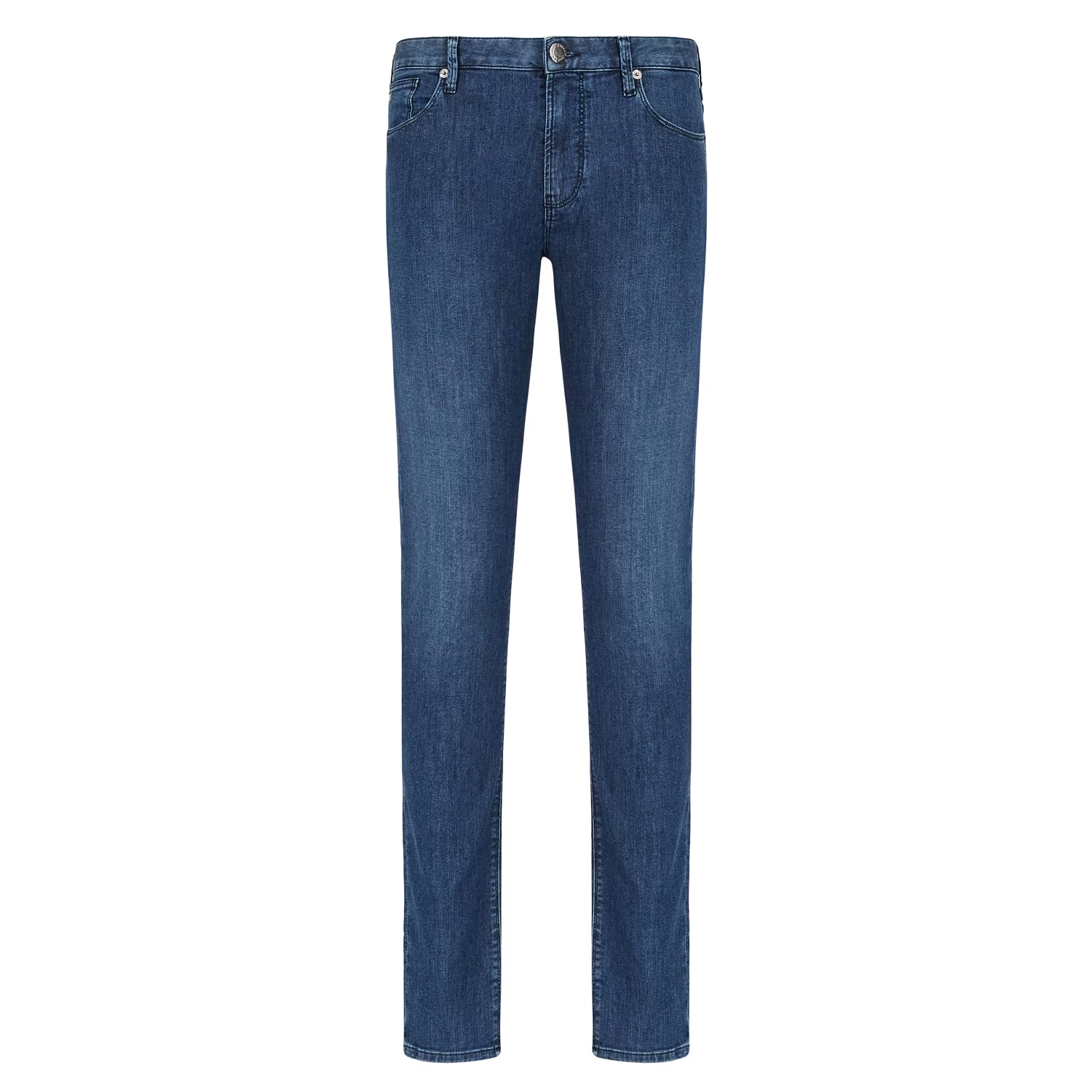 This jeans style features a low waist and fitted leg on a fabric with a worn-effect wash. Zip closure. Slim fit. This item belongs to the Essentials clothing selection, the Emporio Armani capsule collection that is an evergreen statement of style: an ongoing collection with clean, well-designed shapes for a wardrobe that meets the demands of any season. These essentials, versatile pieces are a must-have for the male wardrobe.