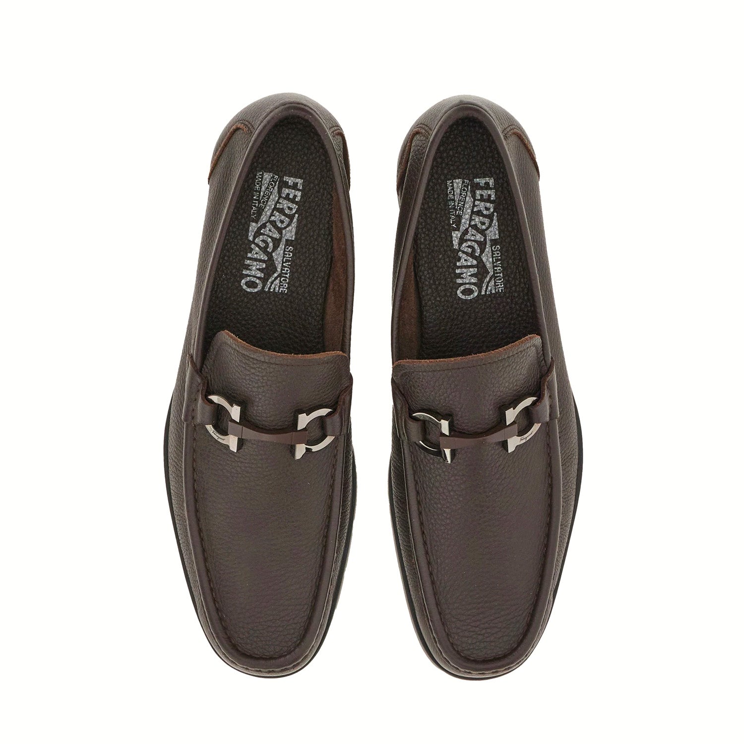 These classic moccasins are made from soft tumbled calfskin leather with a natural grain and adorned with a metal Gancini ornament on a glossy strap. The exquisite tubular construction imparts a soft and lightweight feel, while the traditional hand-crafted upper ensures a refined finish.
