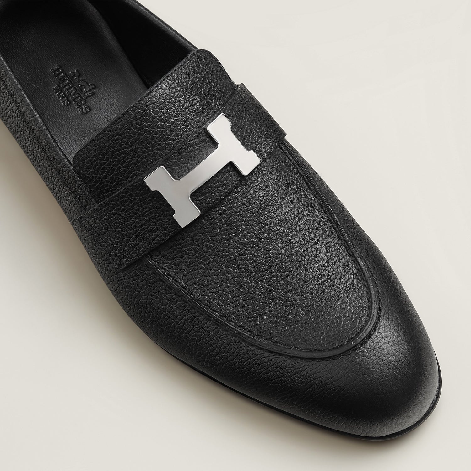 Loafer in grained calfskin with signature Paris buckle.