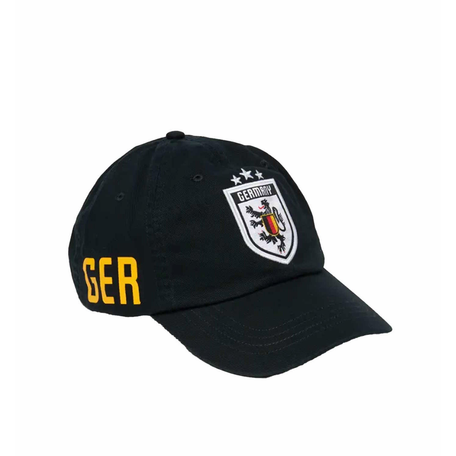 Ventilation holes, classic style, 6-panel design, flexible construction, curved visor with stitching, embroidered front panel, embroidered back panel, adjustable strap with buckle closure