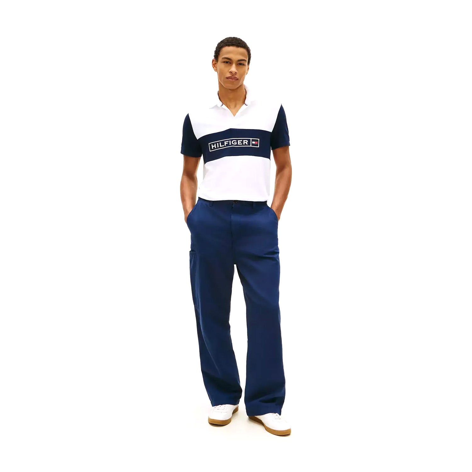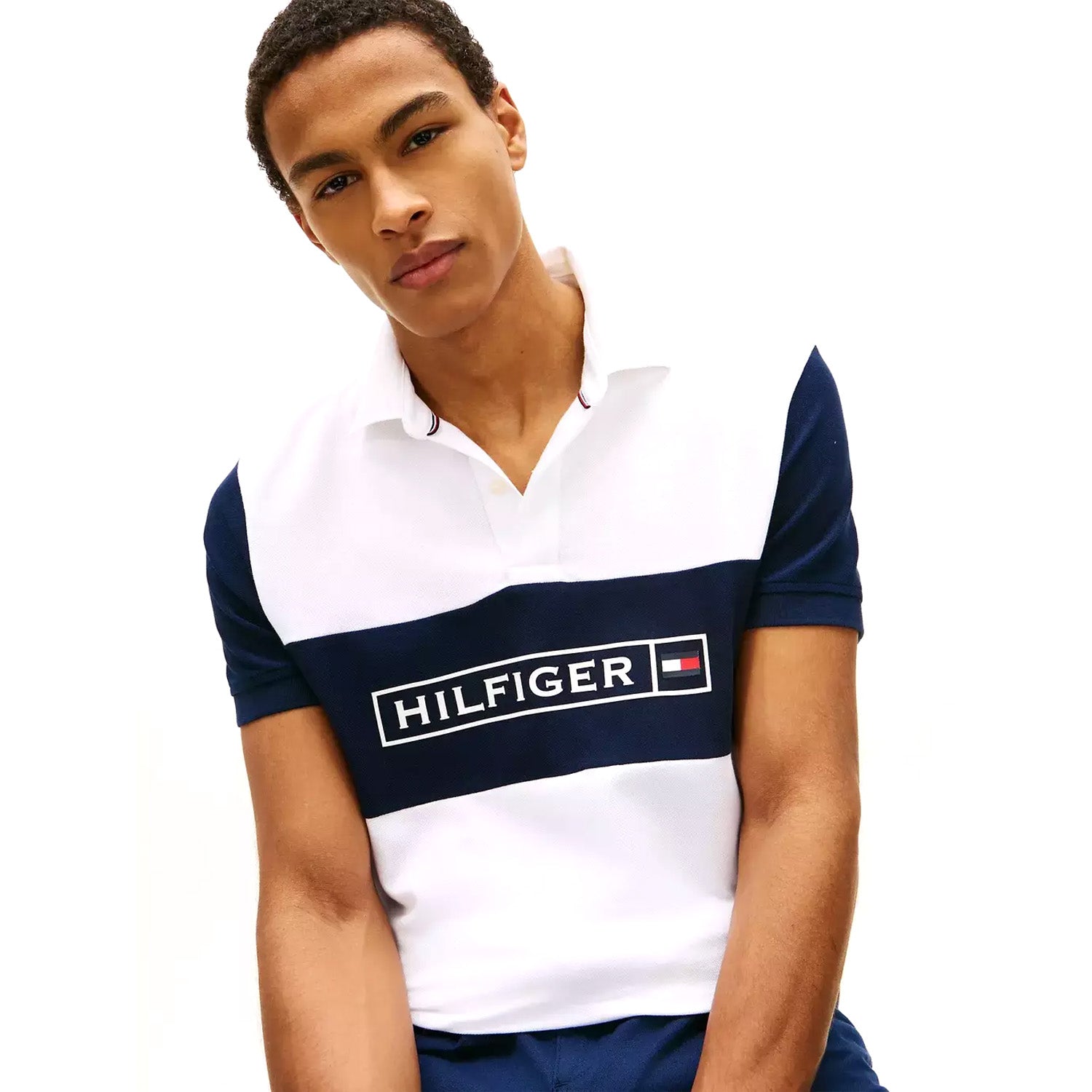 Tommy Hilfiger men's polo. Our quick-dry, moisture-wicking polo is made from a cotton blend in a pique weave, known for its subtle, textured finish that adds dimension and breathability. The medium-weight stretch fabric strikes the ideal balance of structure and softness, offering a lightweight feel that stays comfortable throughout the day.
