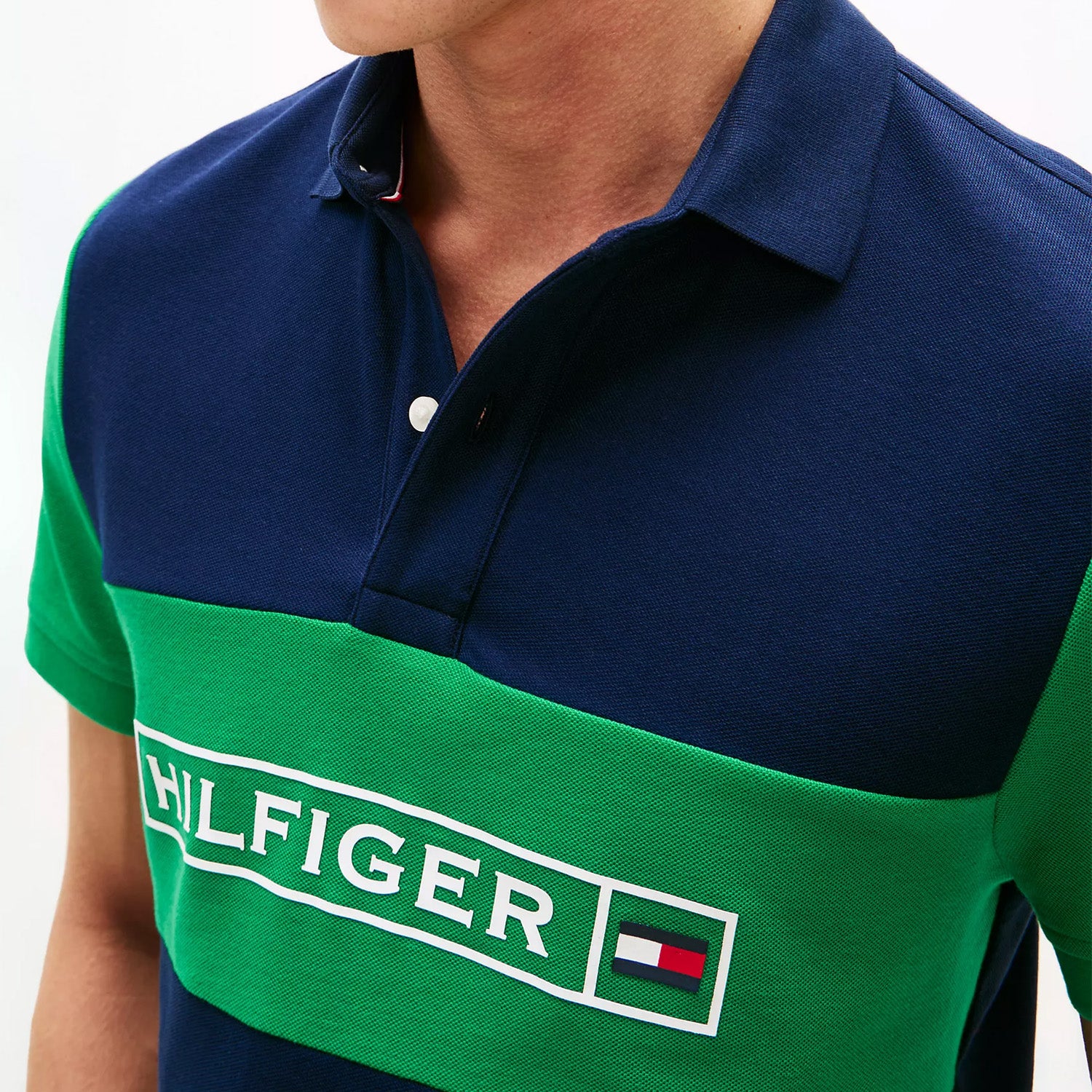 Tommy Hilfiger men's polo. Our quick-dry, moisture-wicking polo is made from a cotton blend in a pique weave, known for its subtle, textured finish that adds dimension and breathability. The medium-weight stretch fabric strikes the ideal balance of structure and softness, offering a lightweight feel that stays comfortable throughout the day.