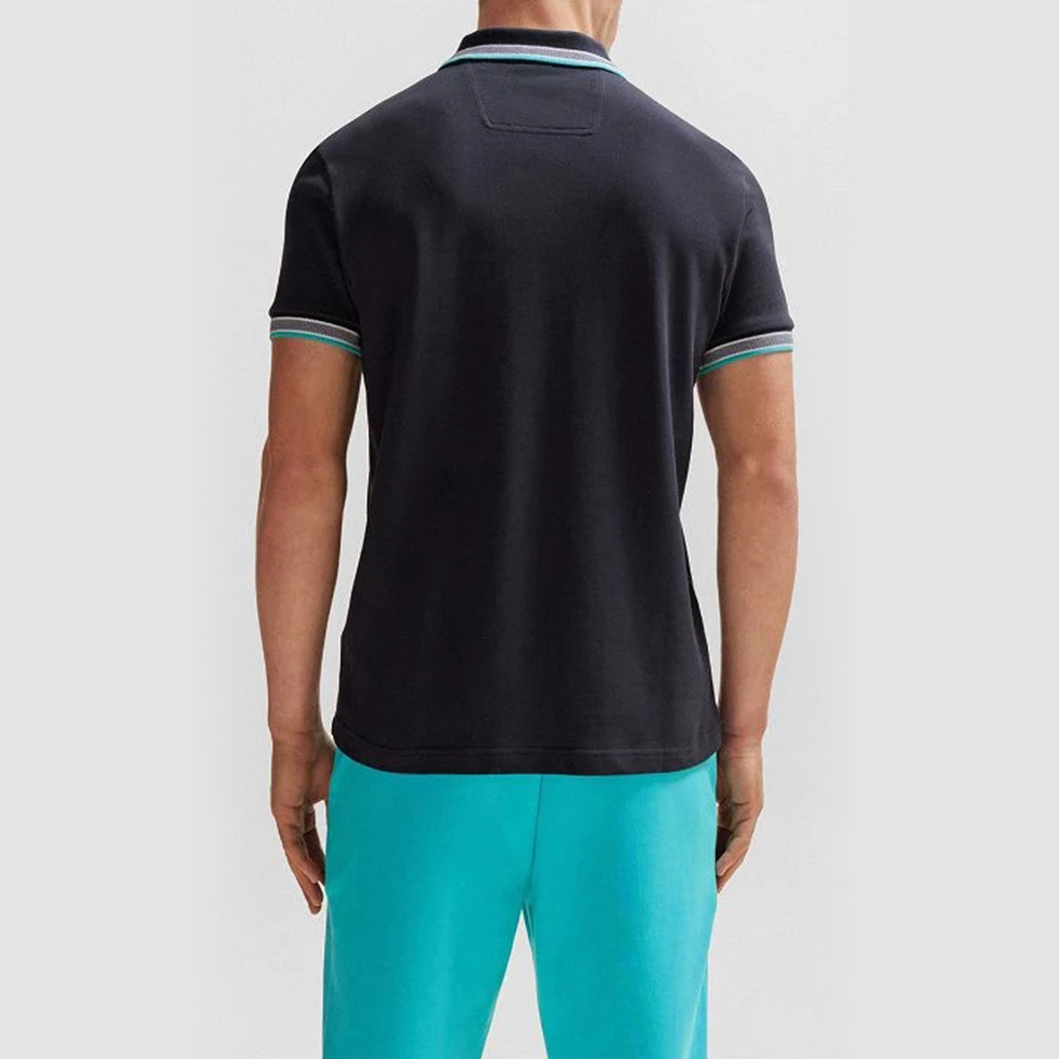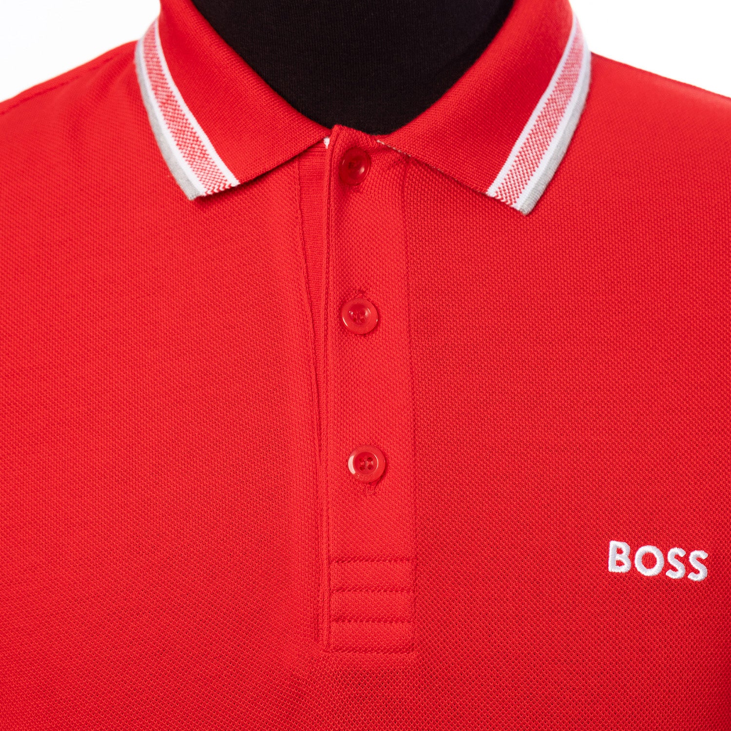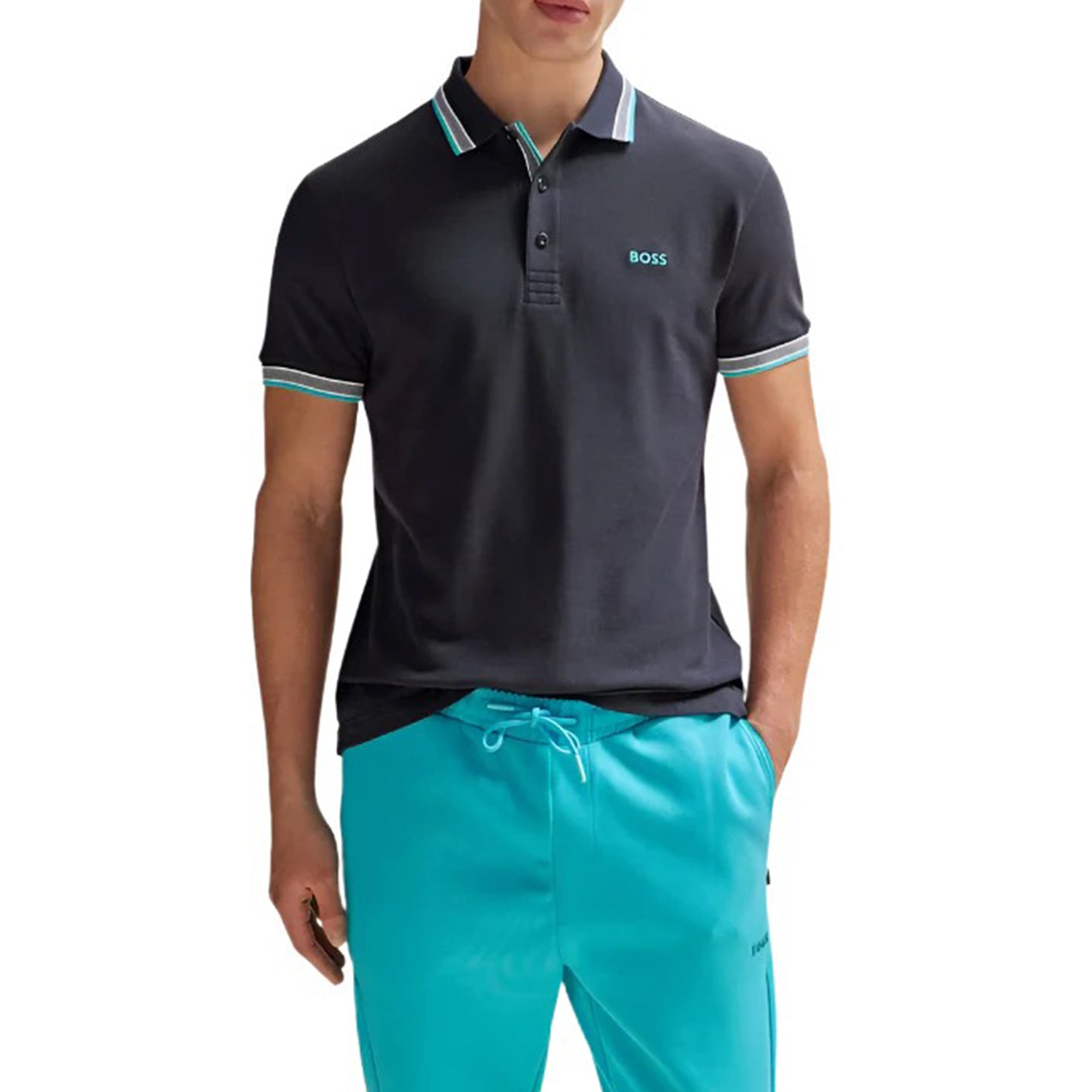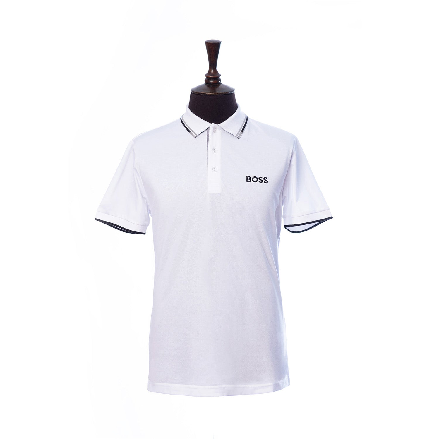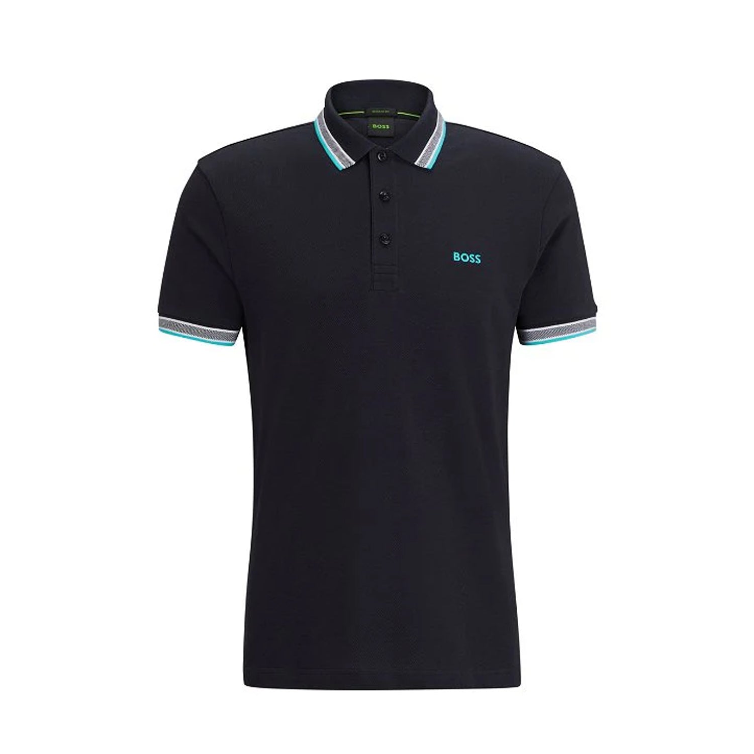 Turn up the collar on this regular-fit polo shirt by BOSS Menswear to reveal logo details. Breathable cotton piqua. Sporty stripes and contrast branding.