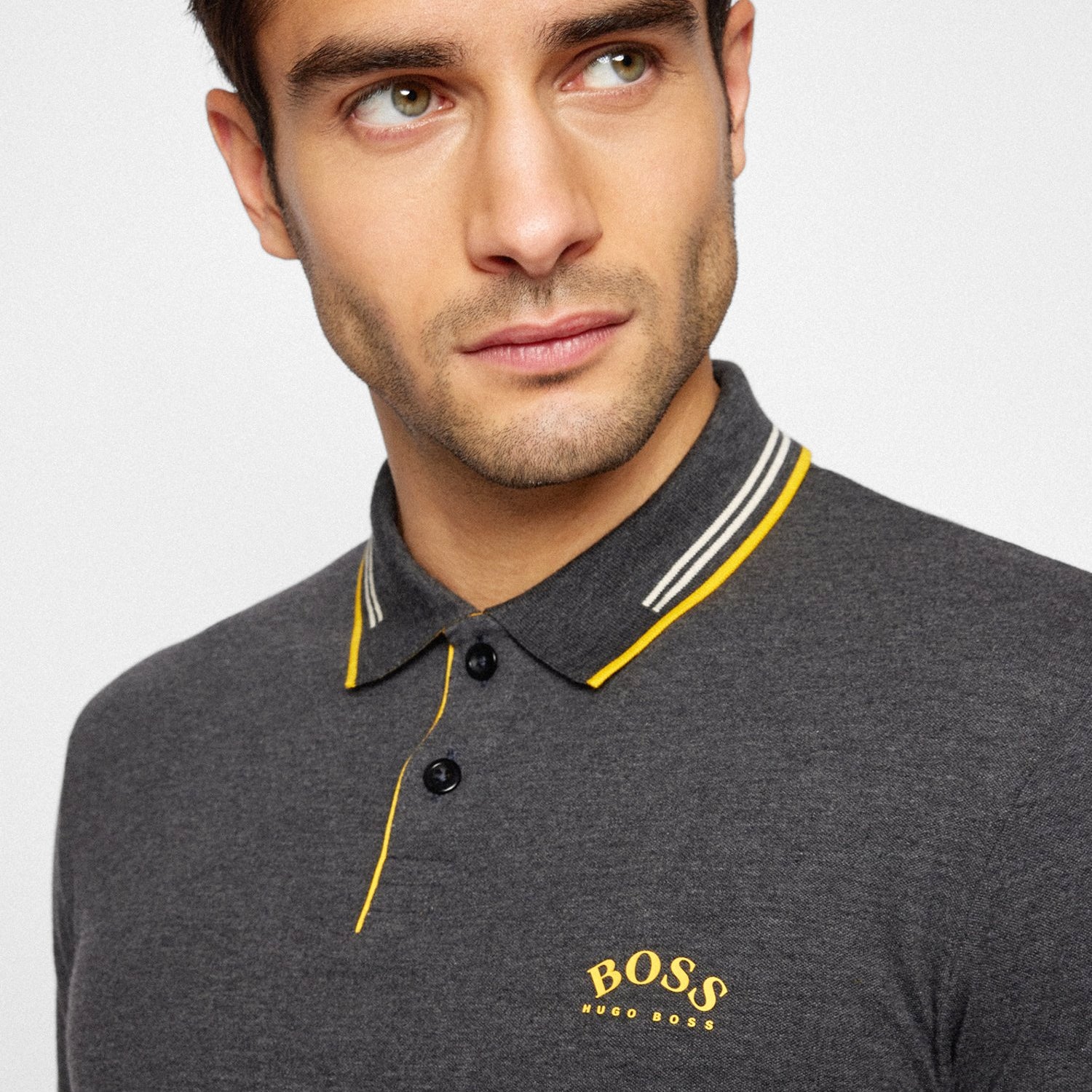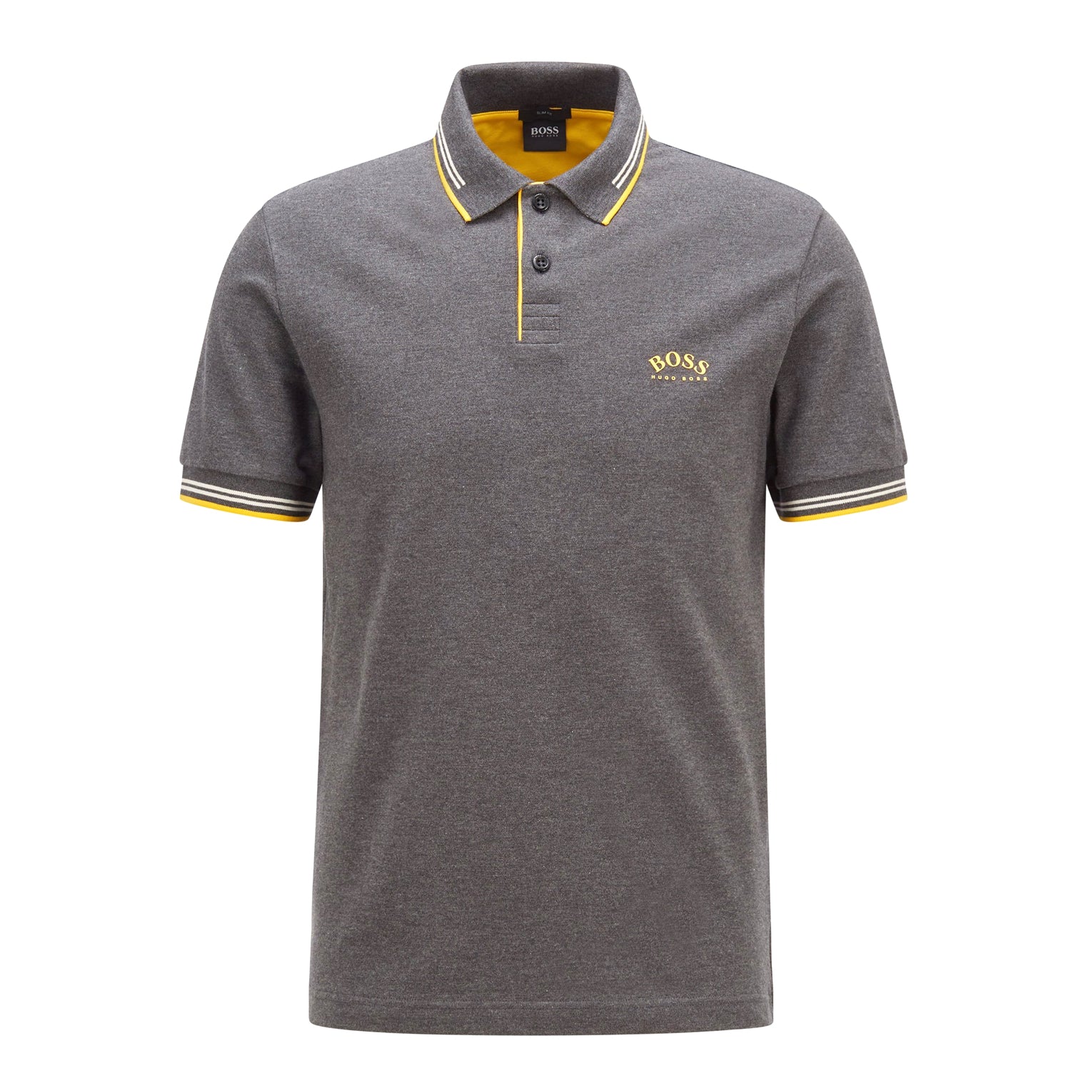 A fresh take on the staple polo shirt by BOSS Menswear. This short-sleeved design is engineered in stretch-cotton piqué with colorful tipping stripes, contrast accents and a branded undercollar for a premium touch. A new-season BOSS logo in a curved orientation at the left chest adds a signature finish.