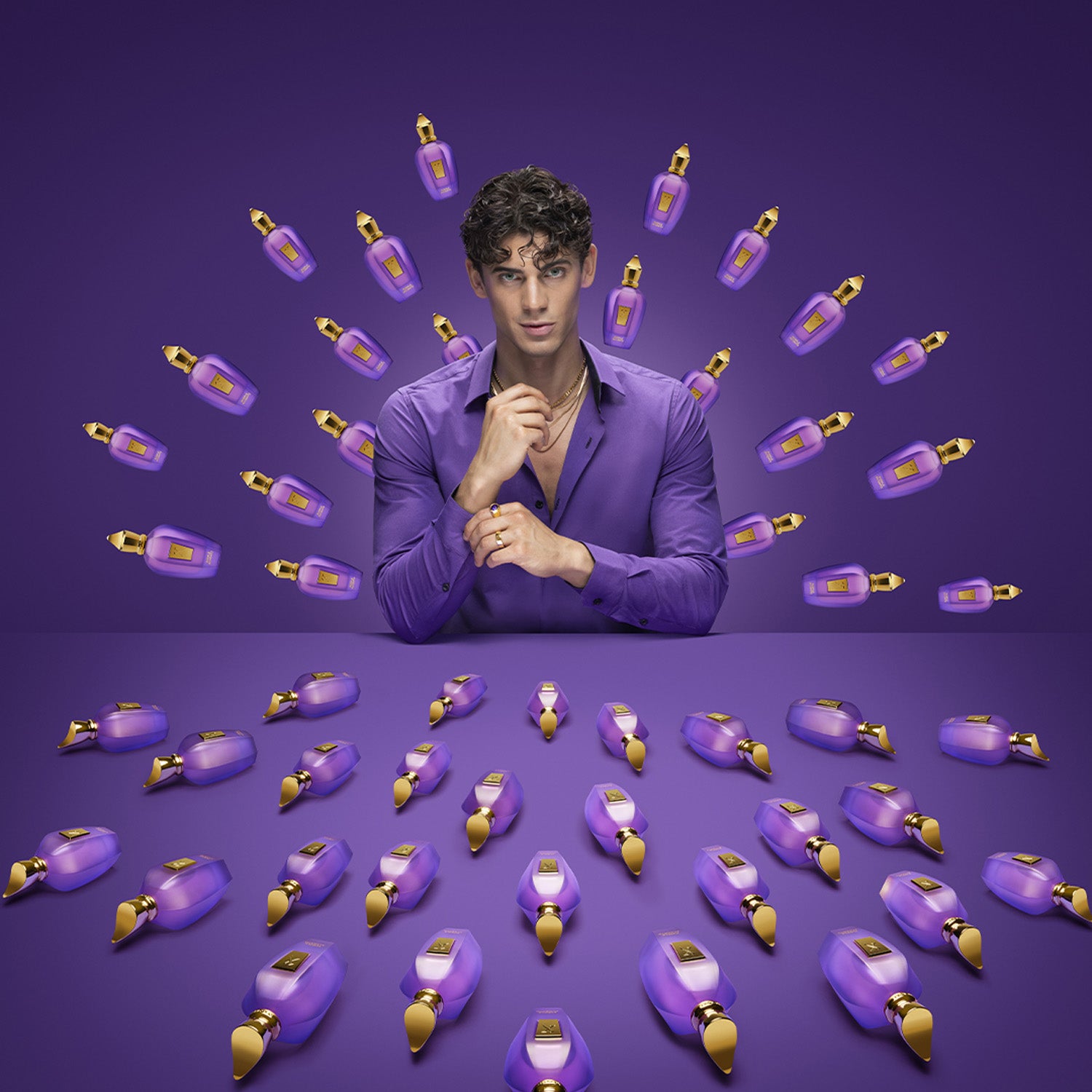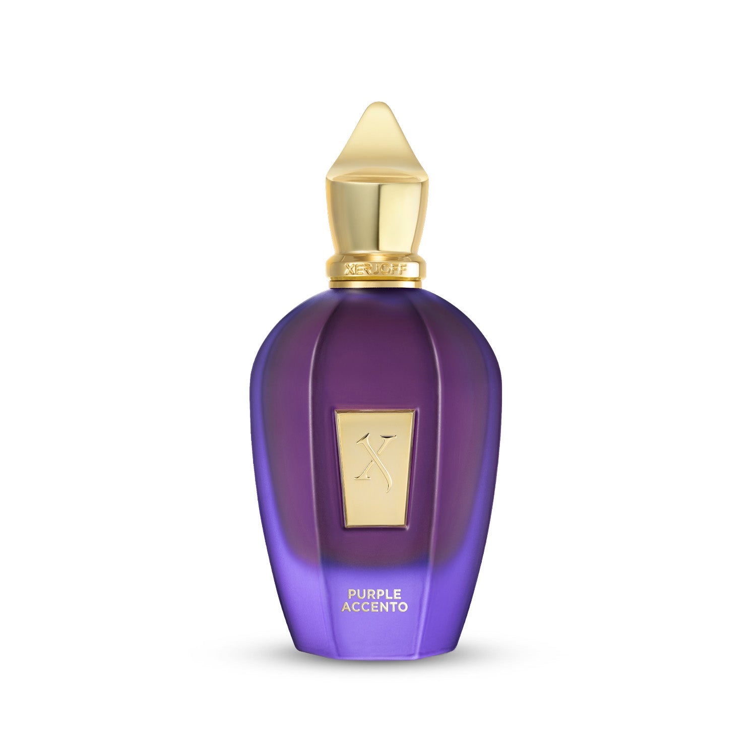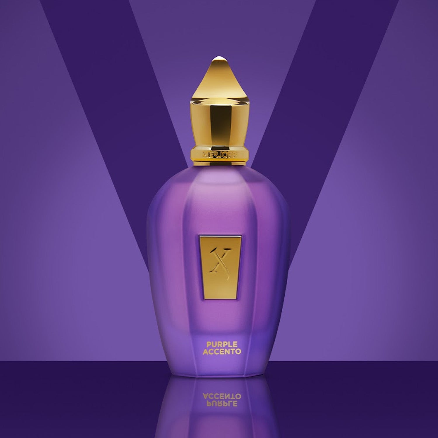 Xerjoff Purple Accento is a vibrant, oriental-floral fragrance in the Vibe Collection, blending sparkling fruit (pineapple, loganberry) and florals (hyacinth, jasmine, orris) with a rich, warm base of amber, musk, sandalwood, vanilla, and oud, offering a captivating, charismatic scent with an upbeat, refined yet exuberant character, known for its striking purple bottle, sometimes crystal-adorned. It's a deeper, fruitier take on the classic Accento, with enhanced berry notes and a sensual, woody drydown.