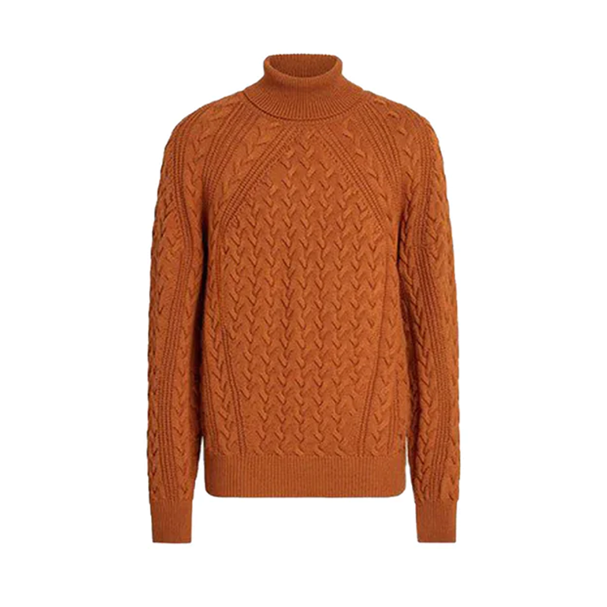 A plain textured knit sweater from the ZEGNA collection. The straight cut model with a high collar and long sleeves is made of natural wool yarn, providing breathability and comfort throughout the day. Combine this sweater with trousers or jeans - it looks equally stylish.