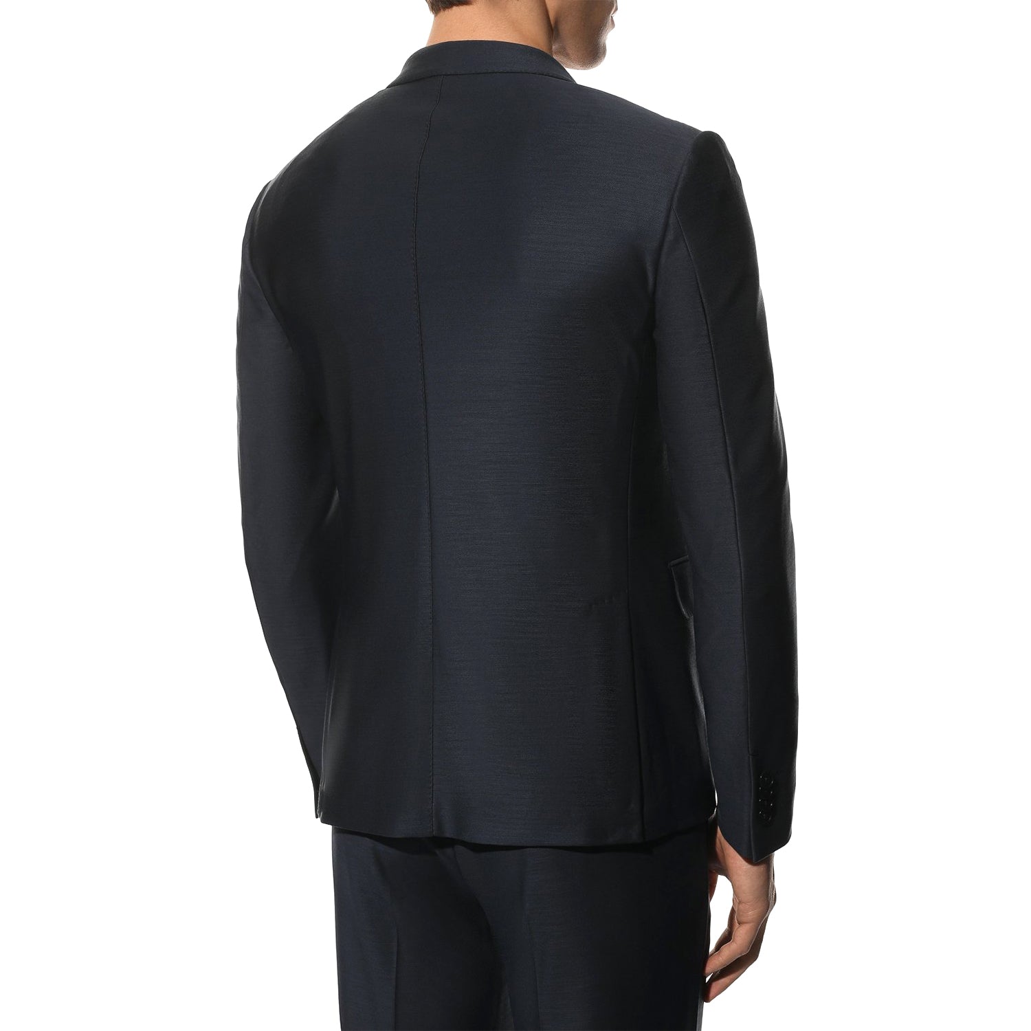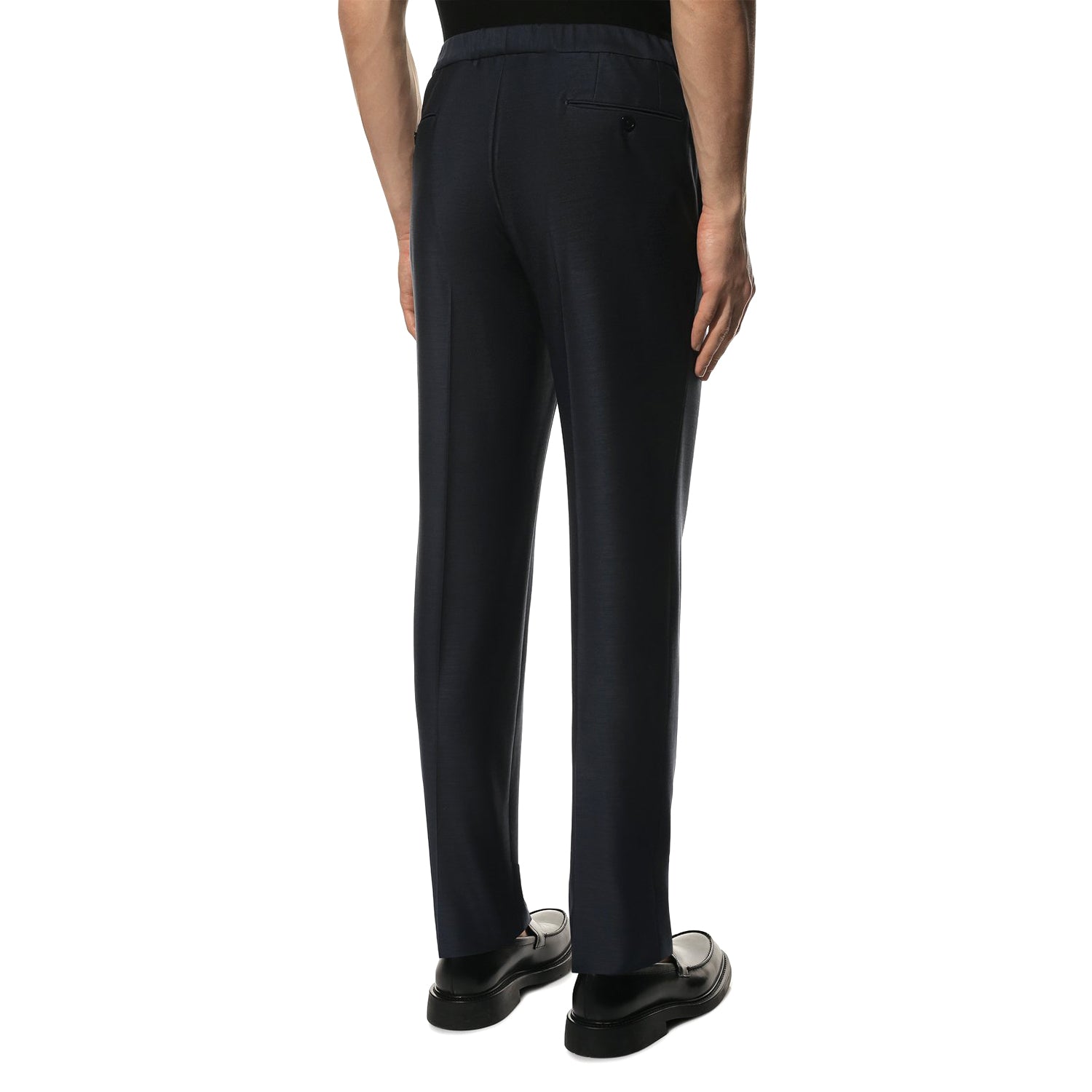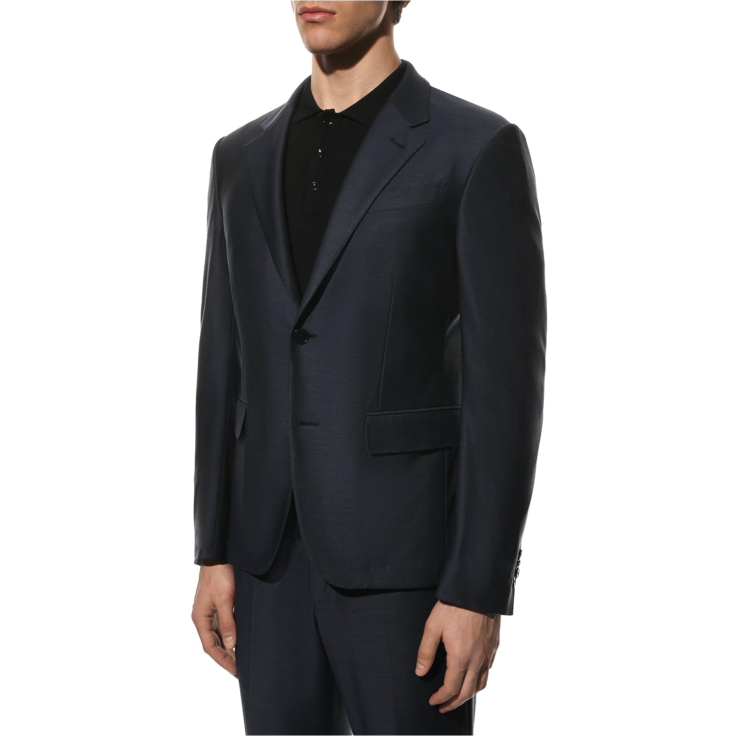 A midnight blue suit from the spring-summer collection can be an impeccable wardrobe solution, combined with laconic office outfits and less formal casual looks. A fitted, single-breasted blazer with wide lapels and straight-leg ruffle trousers are crafted from soft, lightweight wool with a distinct sheen.
