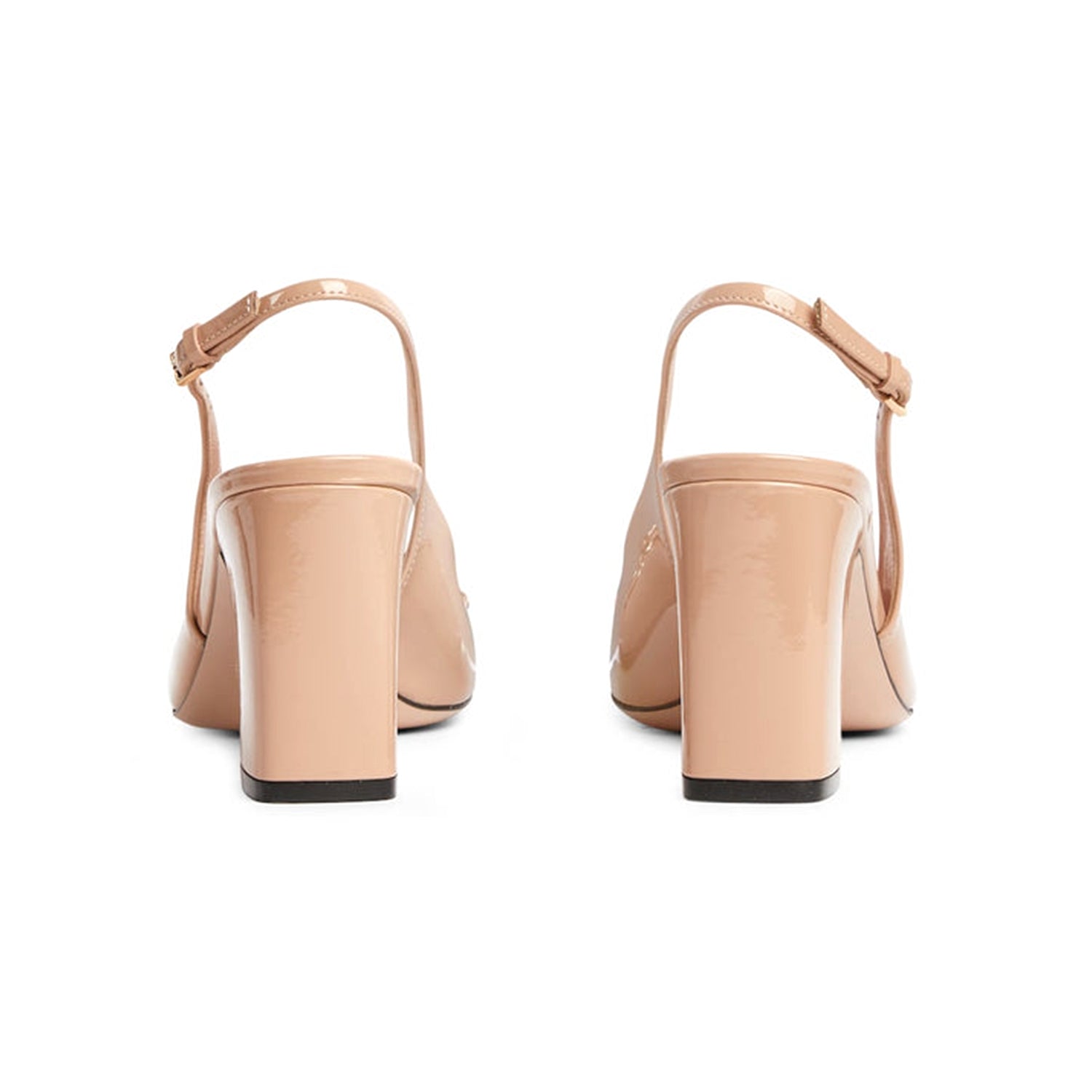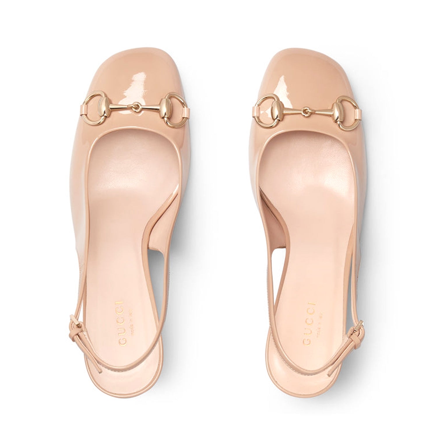 The iconic Horsebit defines this pair of patent leather pumps. The rounded toe and the adjustable ankle closure complete the style, enhancing its preppy spirit.
