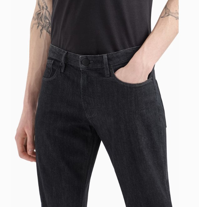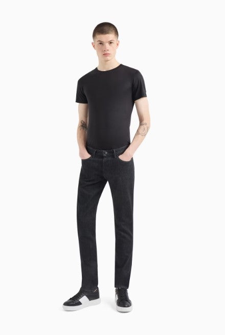 These stretch cotton-denim jeans are made from melange-look twill. Slim fit, low-rise waist and zip closure. Slim fit. This item belongs to the Essentials clothing selection, the Emporio Armani capsule collection that is an evergreen statement of style: an ongoing collection with clean, well-designed shapes for a wardrobe that meets the demands of any season. These essentials, versatile pieces are a must-have for the male wardrobe.