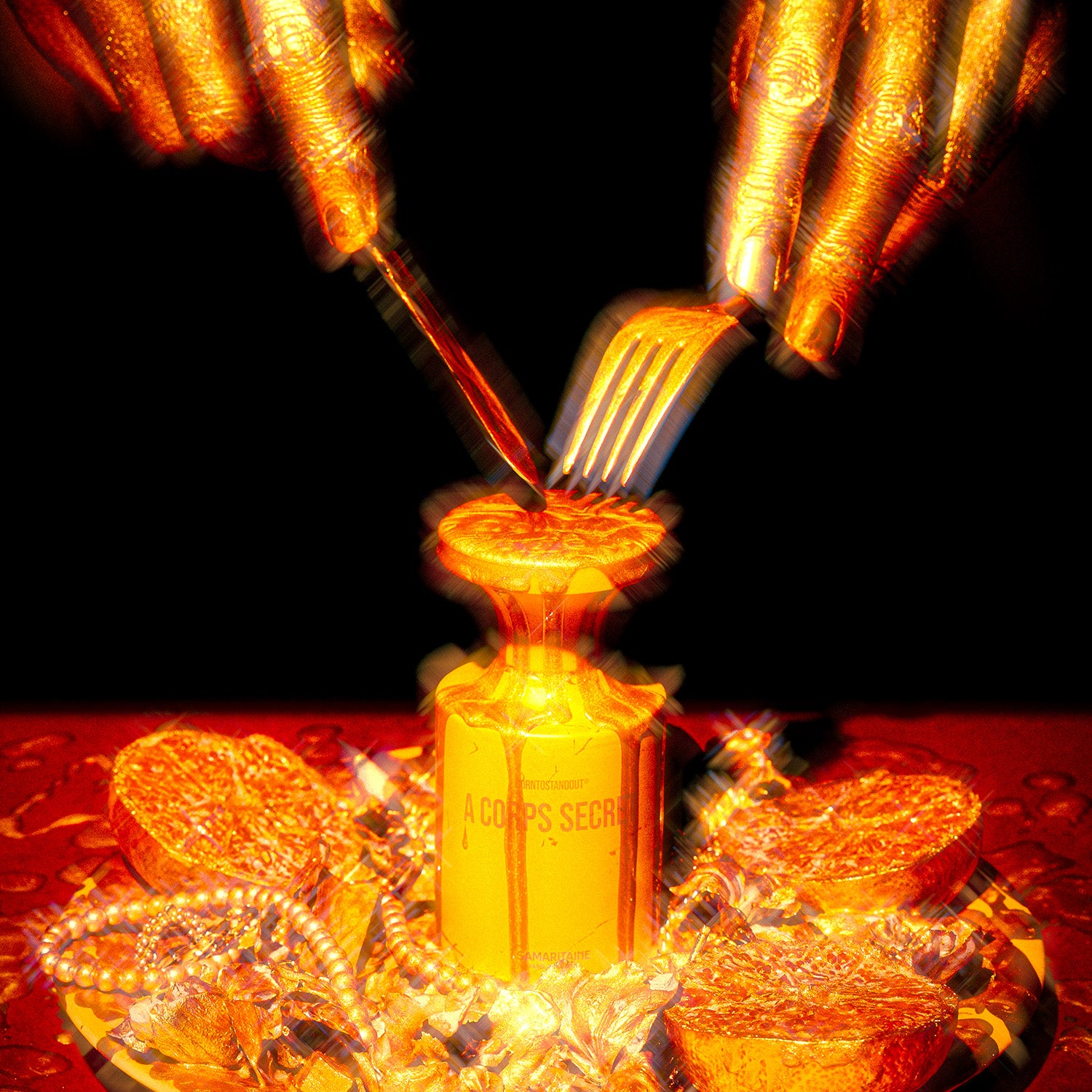 This is Art Nouveau on fire. À CORPS SECRET is born in the heart of La Samaritaine, a temple of Parisian luxury, where dramatic curves, white florals, and ornamental beauty take center stage. Inspired by the soft glow of white blossoms that adorn La Samaritaine, then reimagined with BORNTOSTANDOUT®’s untamed spirit, this heritage turned hedonistic. This is opulence , drenched in flowers, dripping in gold and brass.