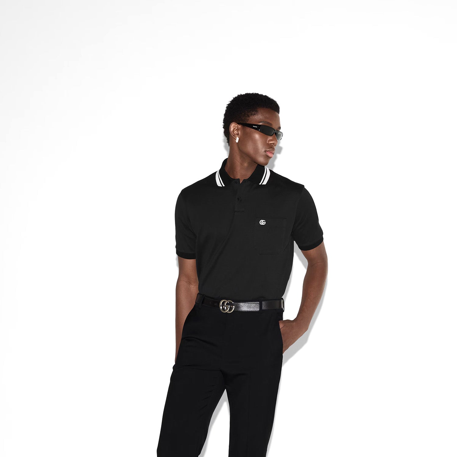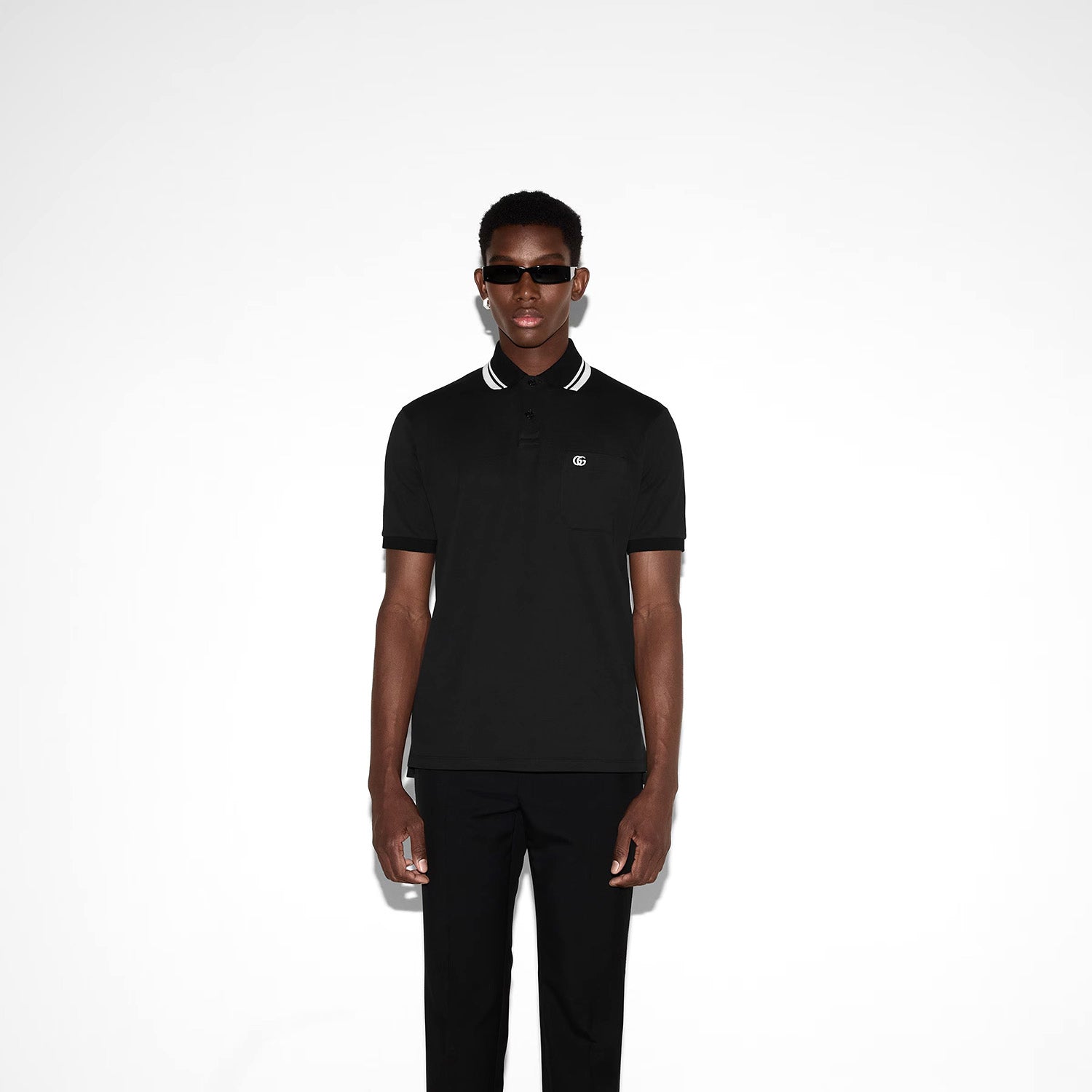 Classics such as soft knitwear and polo shirts throughout the Cruise 2025 collection stand out with subtle details that elevate everyday looks. This regular fit polo shirt is presented in a stretch cotton piquet and enriched with a contrasting Double G embroidery.