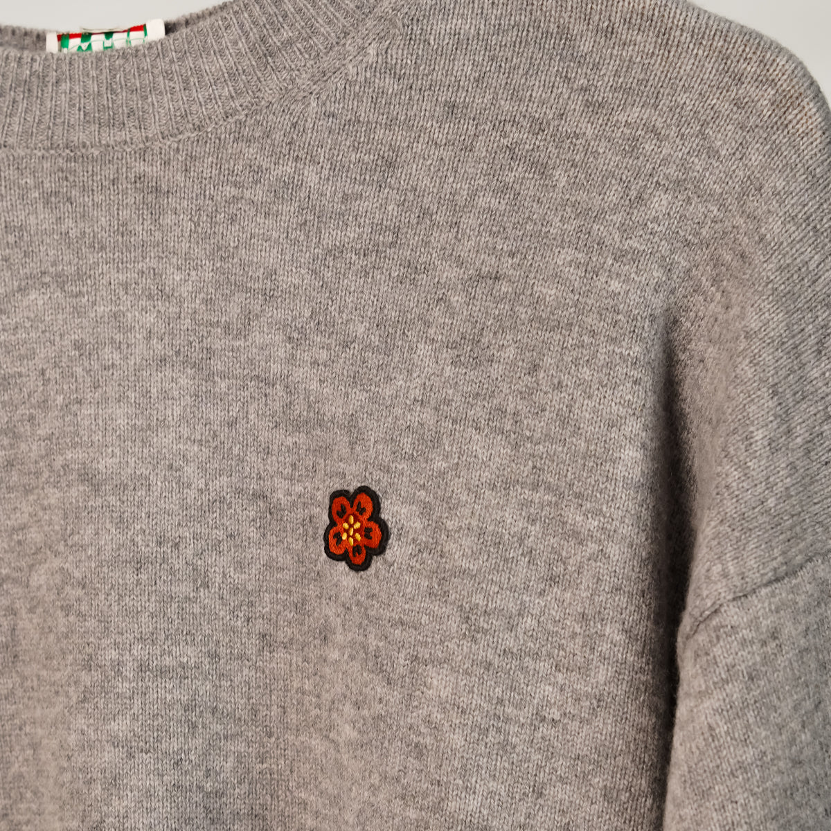 This refined KENZO Paris jumper with a classic cut is perfect for cold weather. It has a KENZO Paris logo in discreet tones on the back. This timeless men's wardrobe must-have also features a delicate 'BOKE FLOWER' embroidered on the chest.