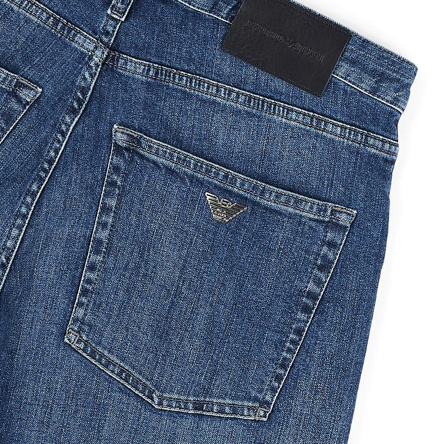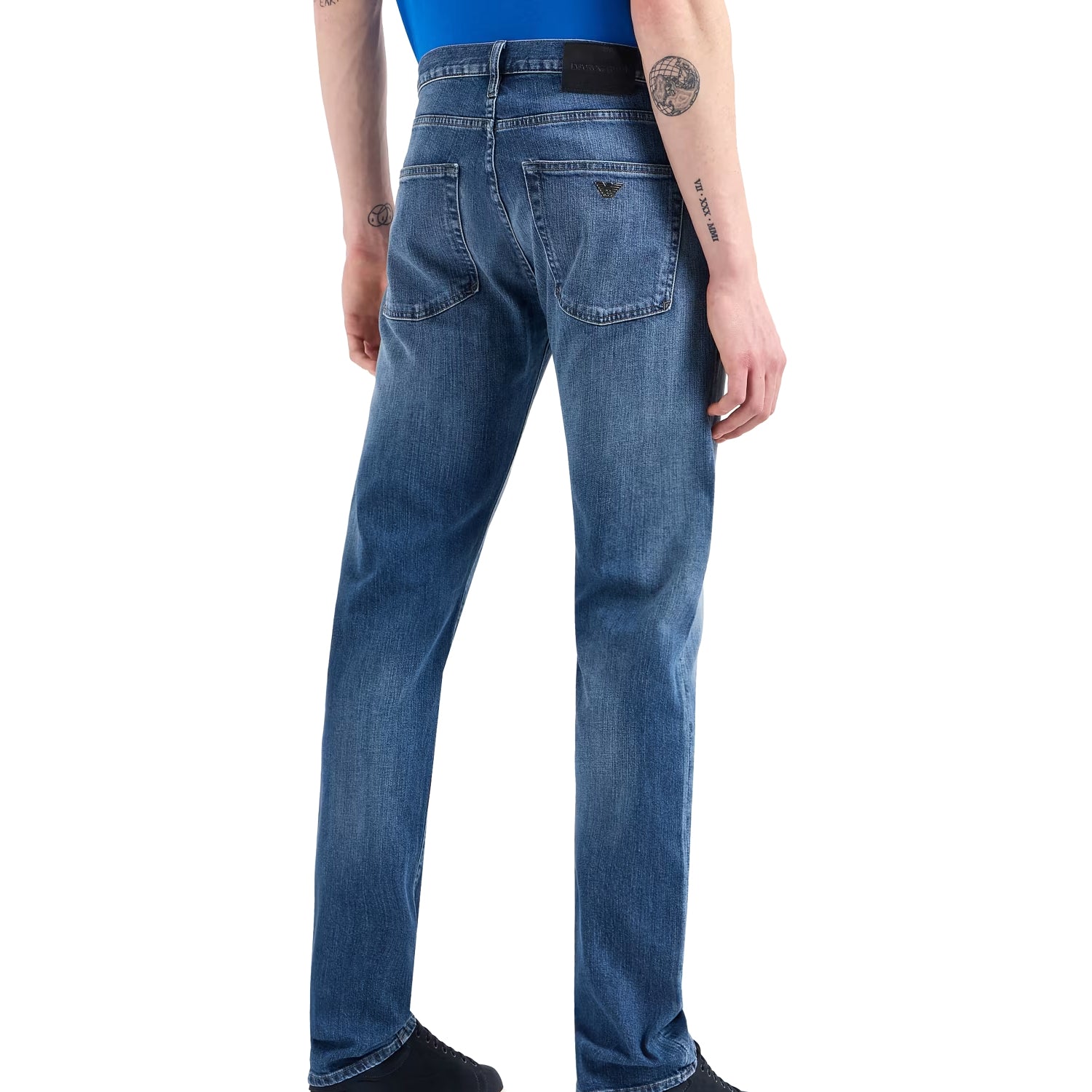 These stretch cotton-denim jeans are made from melange-look twill. Regular leg and waist with zip closure. Regular fit. This item belongs to the Essentials clothing selection, the Emporio Armani capsule collection that is an evergreen statement of style: an ongoing collection with clean, well-designed shapes for a wardrobe that meets the demands of any season. These essentials, versatile pieces are a must-have for the male wardrobe.