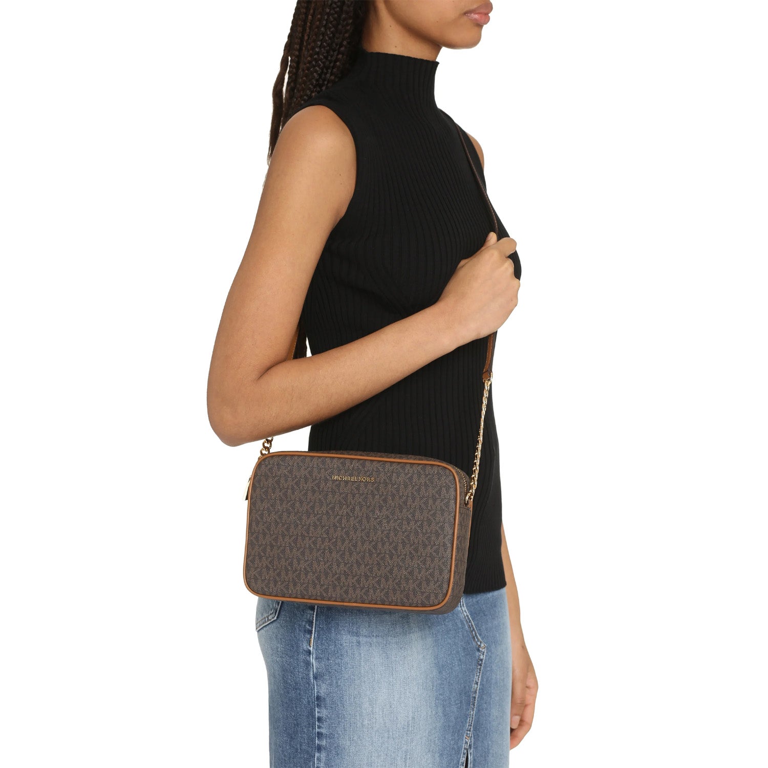 Designed in a clean-lined silhouette from Signature-print canvas, the Jet Set crossbody bag is an instant classic. Polished hardware speaks to a luxe sensibility, while a spacious interior offers easy organization for your essentials. Wear it to add a novelty twist to any ensemble.9.5"W X 6.25"H X 2"D