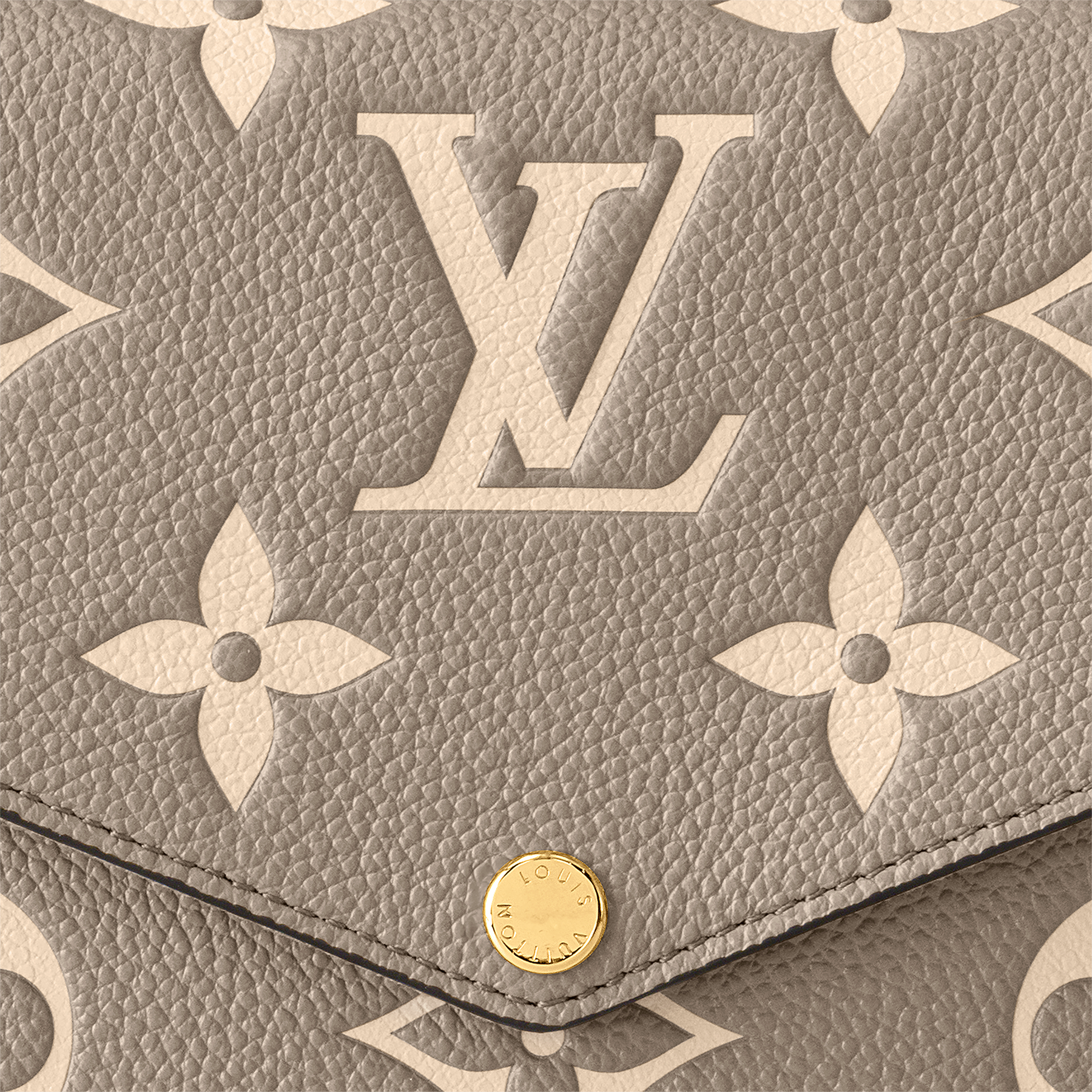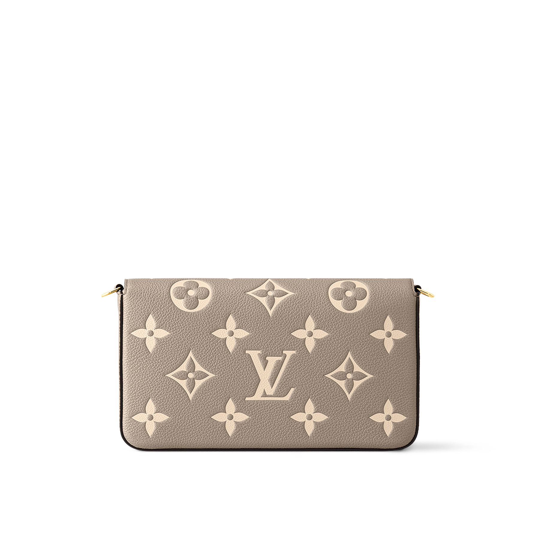 The Felicie Pochette is crafted from supple Monogram Empreinte leather, embossed with Louis Vuitton's iconic Monogram pattern. The bicolor palette brings added refinement to this elegant and versatile design, which features a removable chain, enabling it to be carried on the shoulder or as a clutch, as well as two removable pockets.