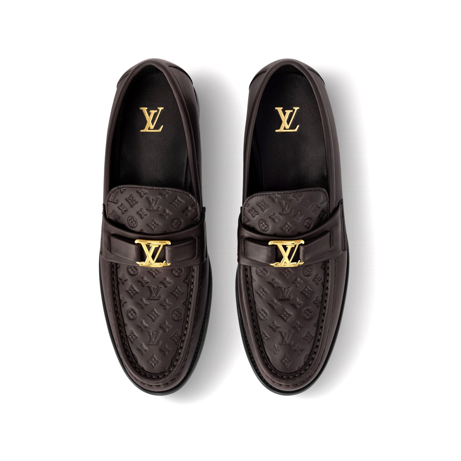 The emblematic Major loafer is revisited this season in smooth calf leather with a subtly contrasting vamp in Monogram-embossed leather, which is signed with an LV Initials accessory. A testament to the House's craftsmanship, this model features a traditional Blake construction, while the vamp is stitched by hand. The leather and rubber outsole offers comfort and durability.