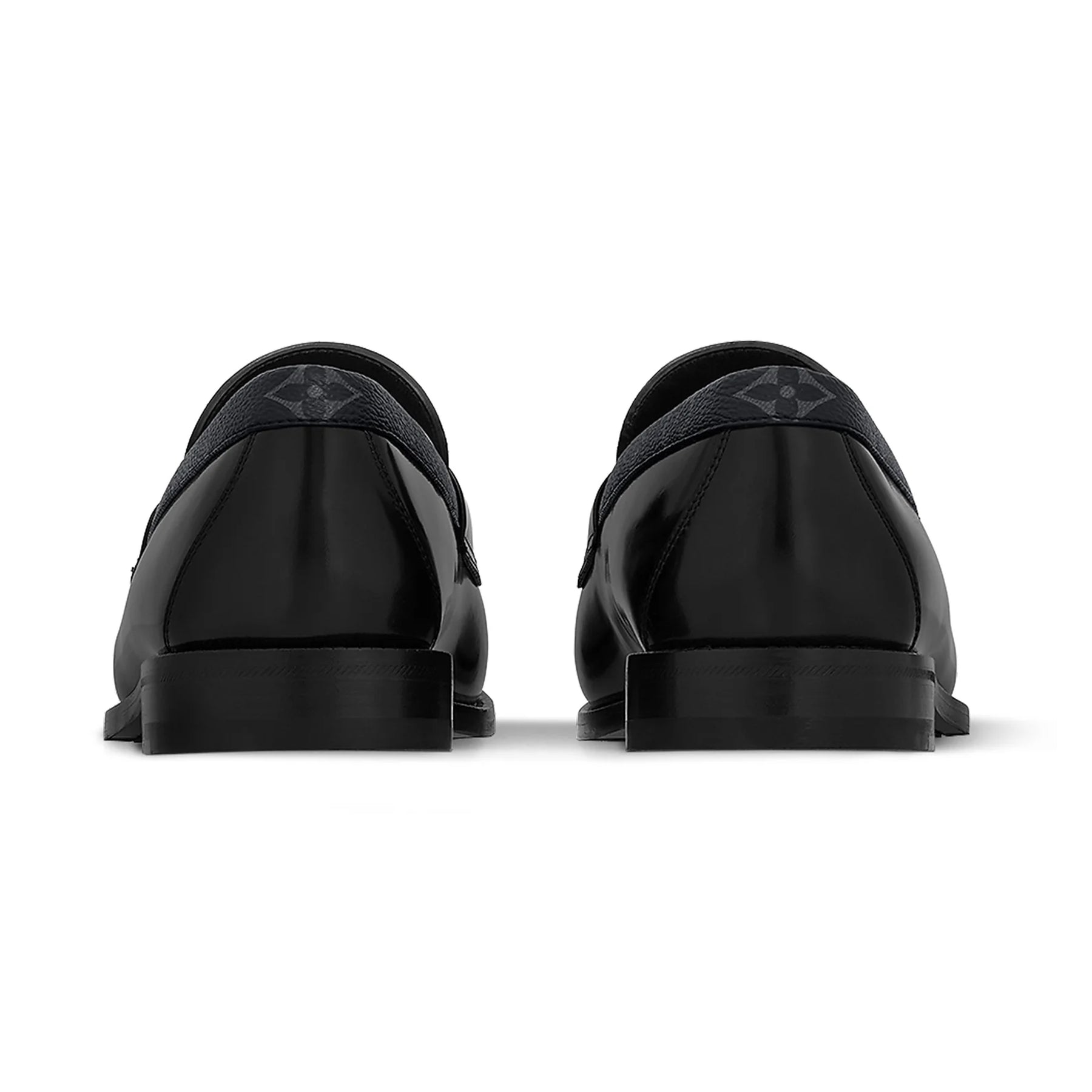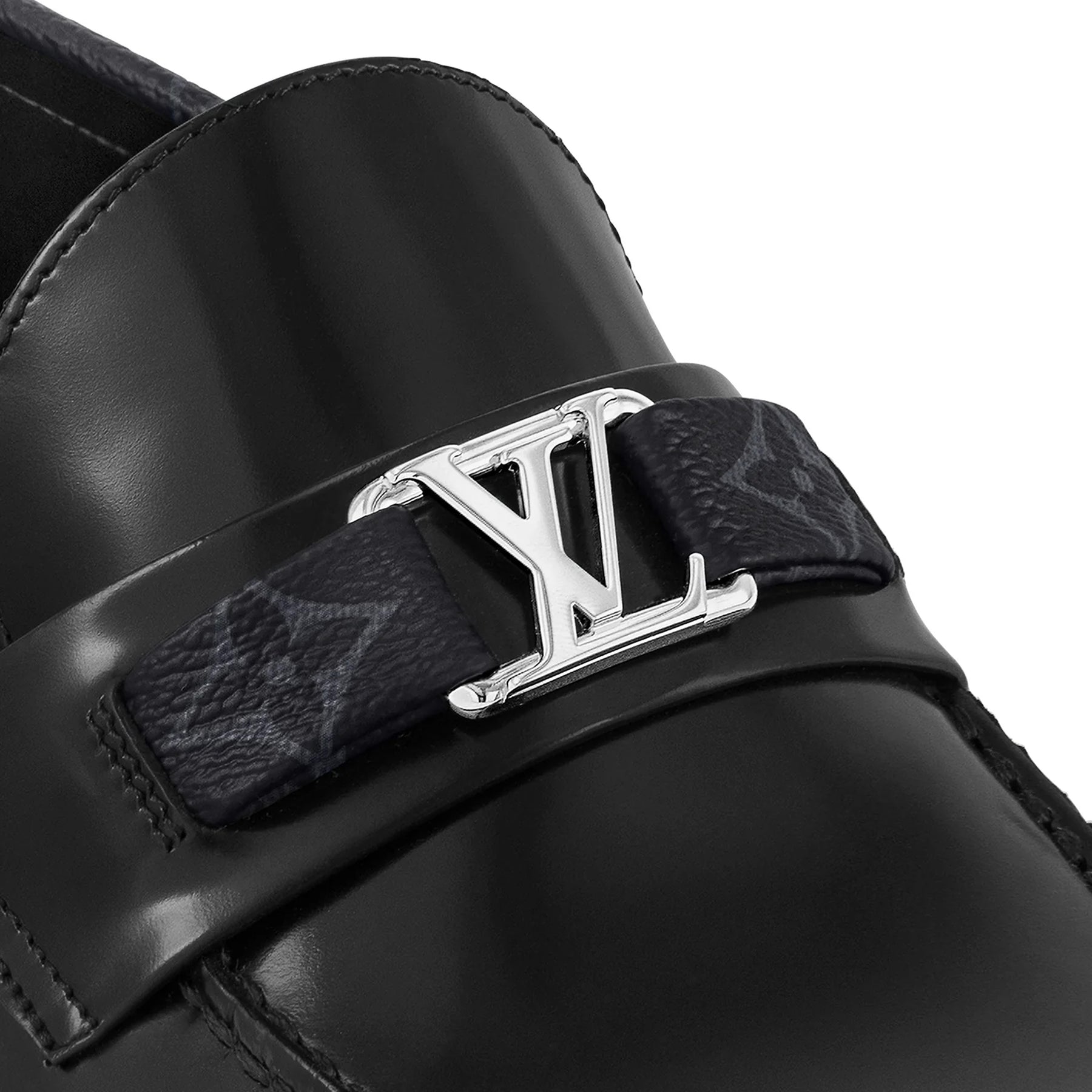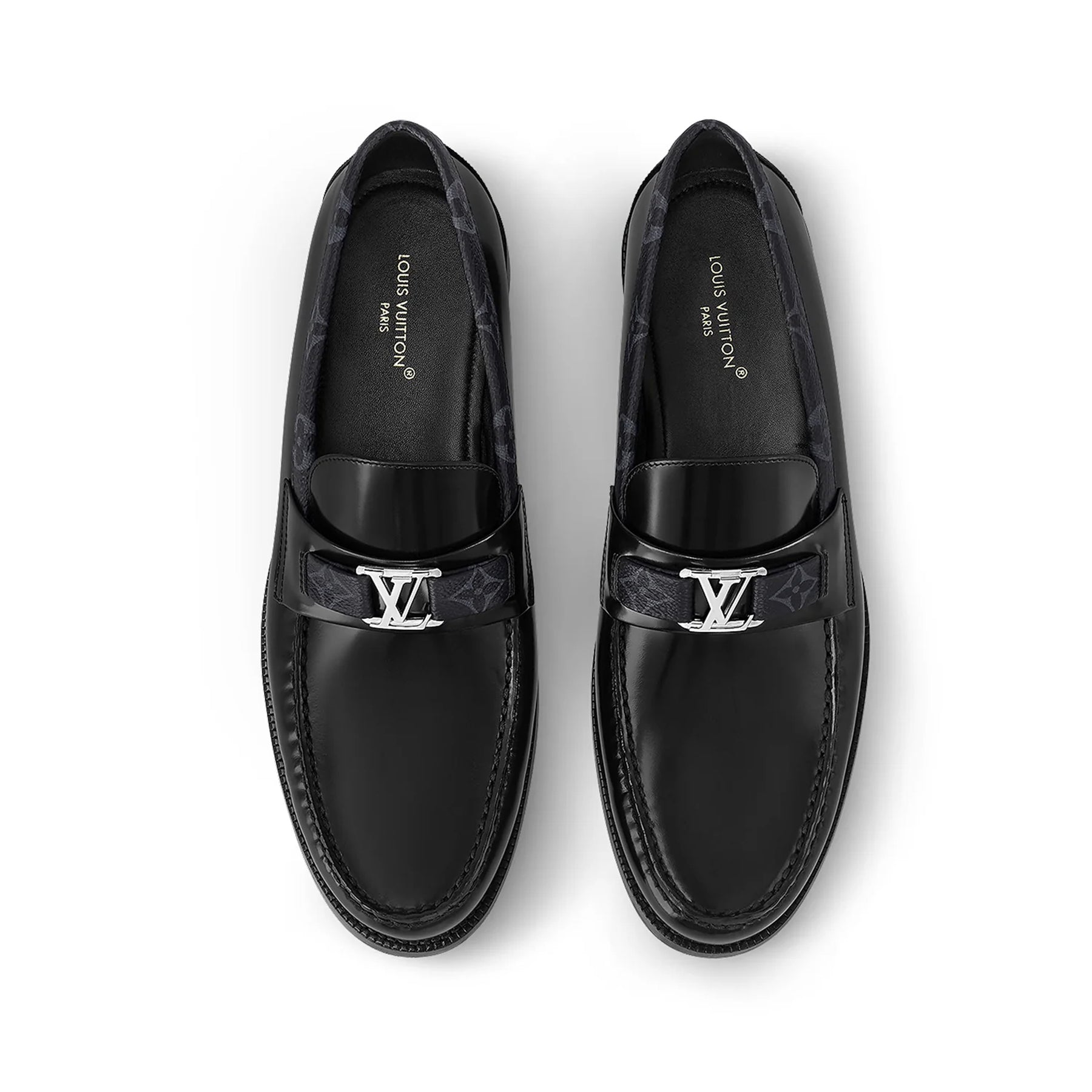 The classic Major loafer is revisited this season in supple grained calf leather, which is partially embossed with the iconic Monogram pattern. This timeless style, which suits all occasions, is characterized by its Blake construction and hand-stitched vamp. It is signed with an LV Initials accessory and finished with a leather and rubber outsole.