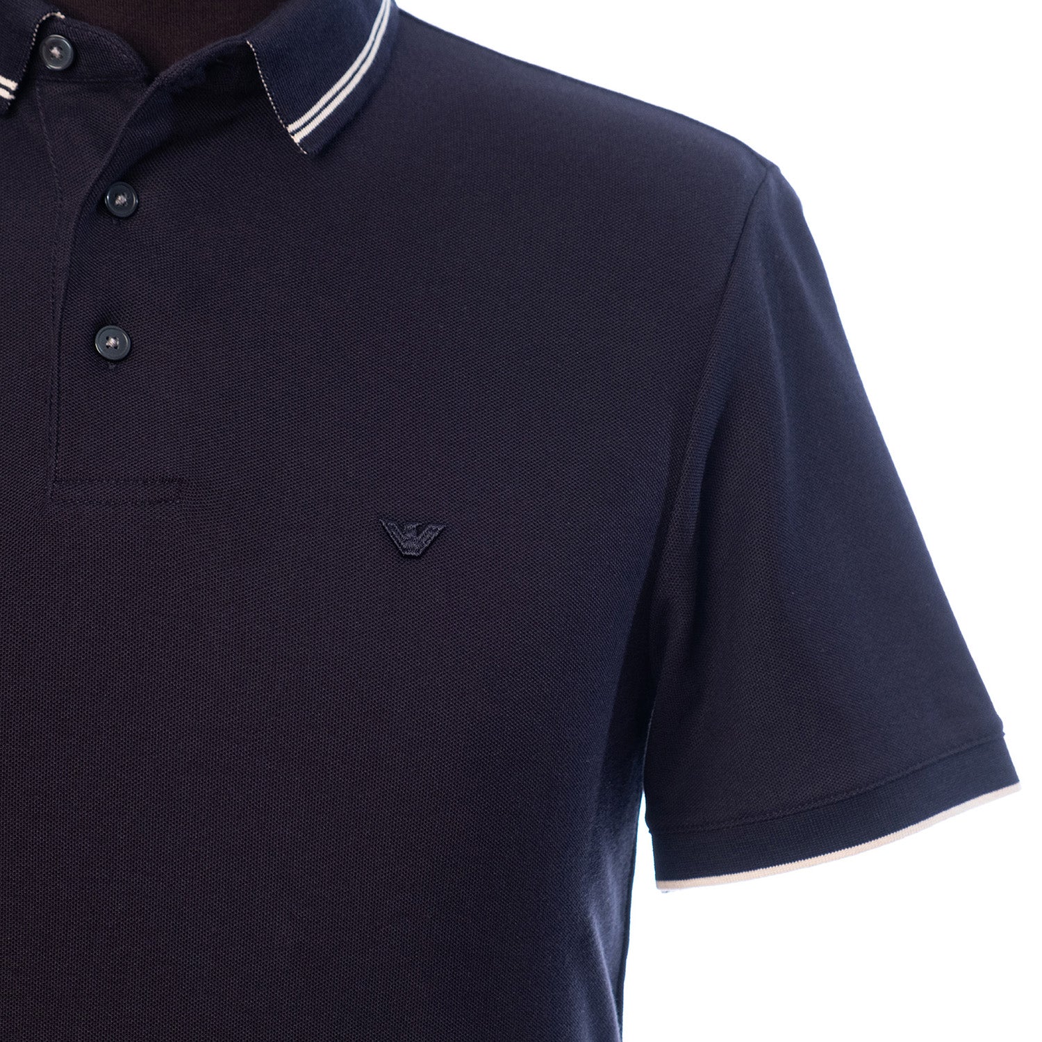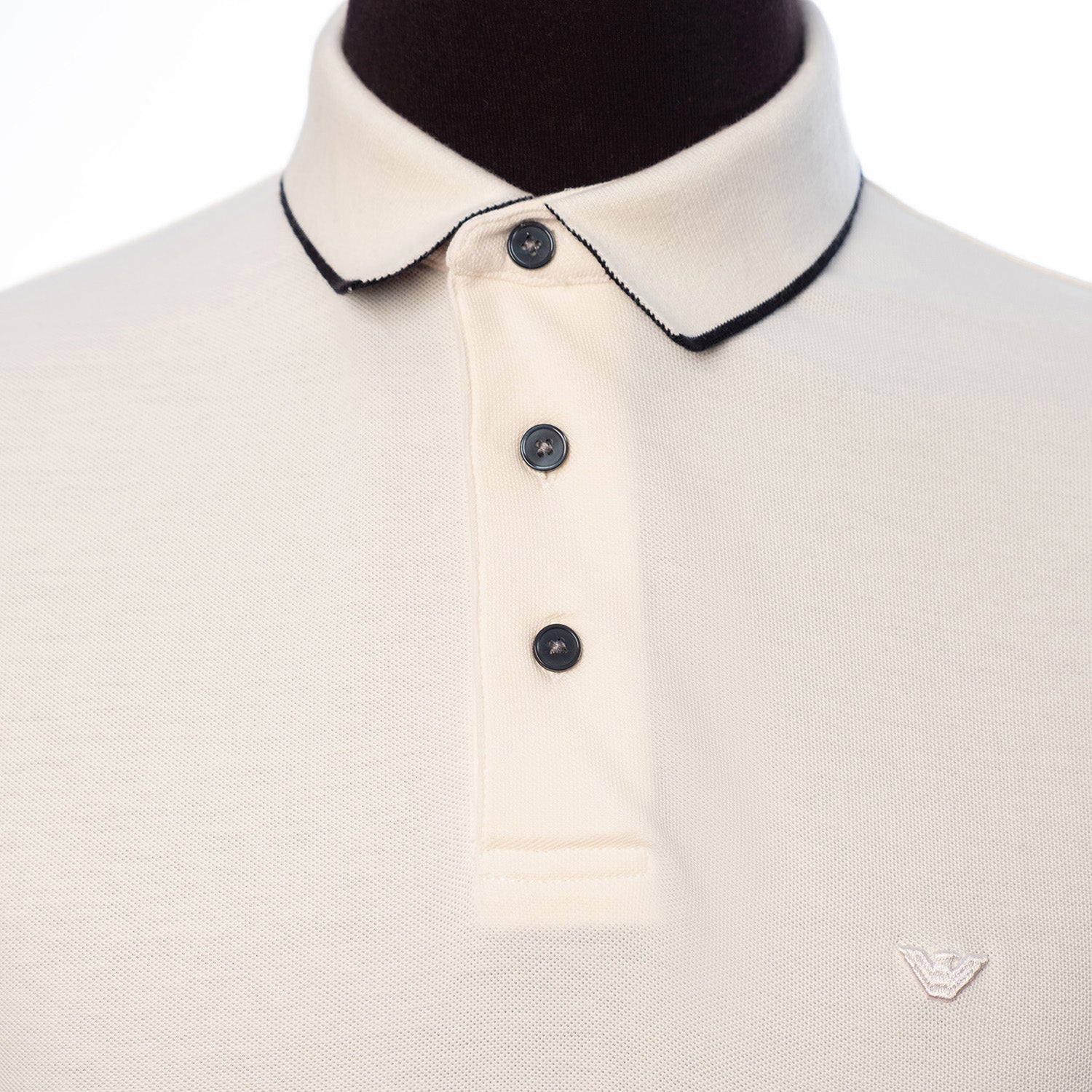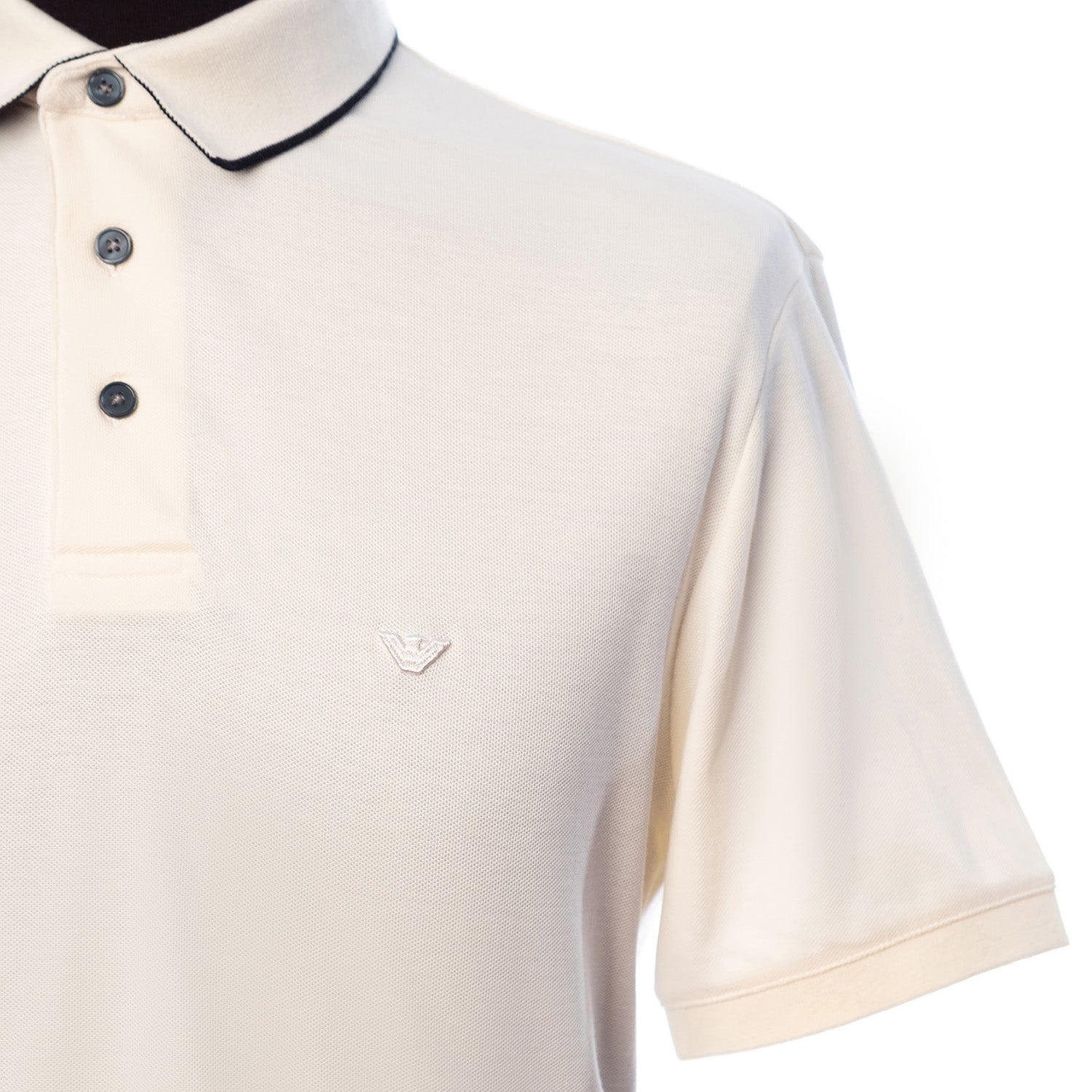 Men's polo shirt made from cotton piqua, a soft, light fabric that brings understated elegance to everyday wear. The collar trim, with details in two different variations depending on the style, distinguishes the garment.